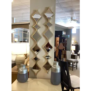 Who needs a frame when mirrored glass reflects such exceptional craftsmanship? This accent mirror has a stunning raised geometric design for six times the beauty. Hangs with striking appeal in a vertical position on your wall.