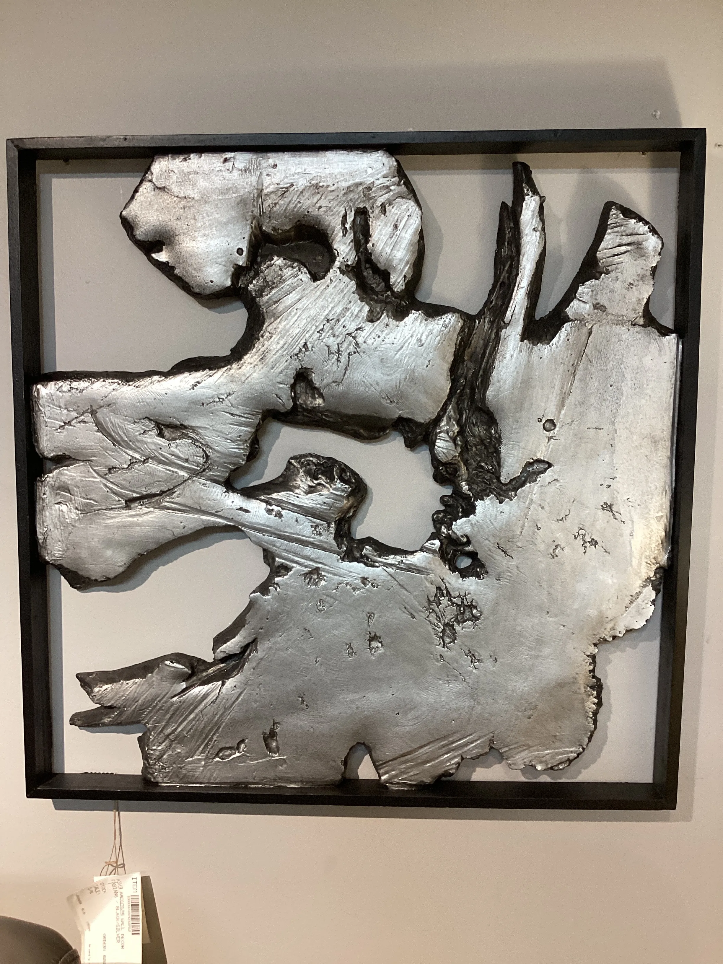 Create a fascinating focal point in any room using this square framed wall sculpture. Bring depth to any wall with its three dimensional tree cross-section design. The cross-section is embellished with a lustrous silver magnesium oxide finish that contrasts beautifully with the black frame. With all these unique elements, this sculpture easily complements a modern decor.