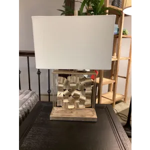 Why settle for standard light fixtures when this table lamp adds so much warmth and style? This hexagon-shaped lamp features an antiqued pewter-tone and black finish topped with a drum shade. Whether lighting a living area, bedroom or entryway, this piece will steal the spotlight wherever it lands.