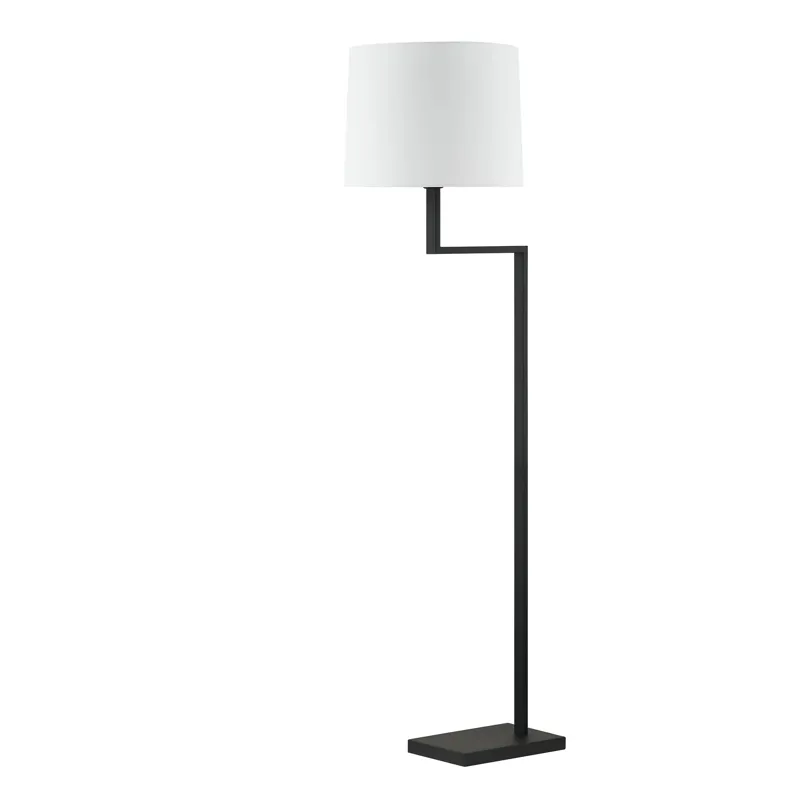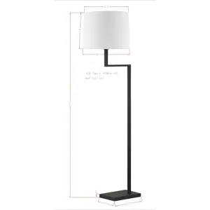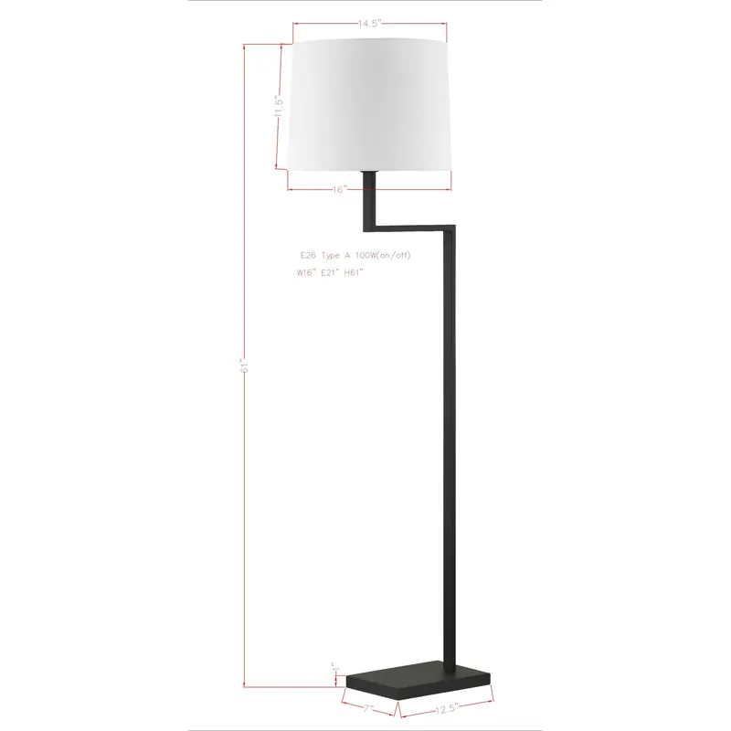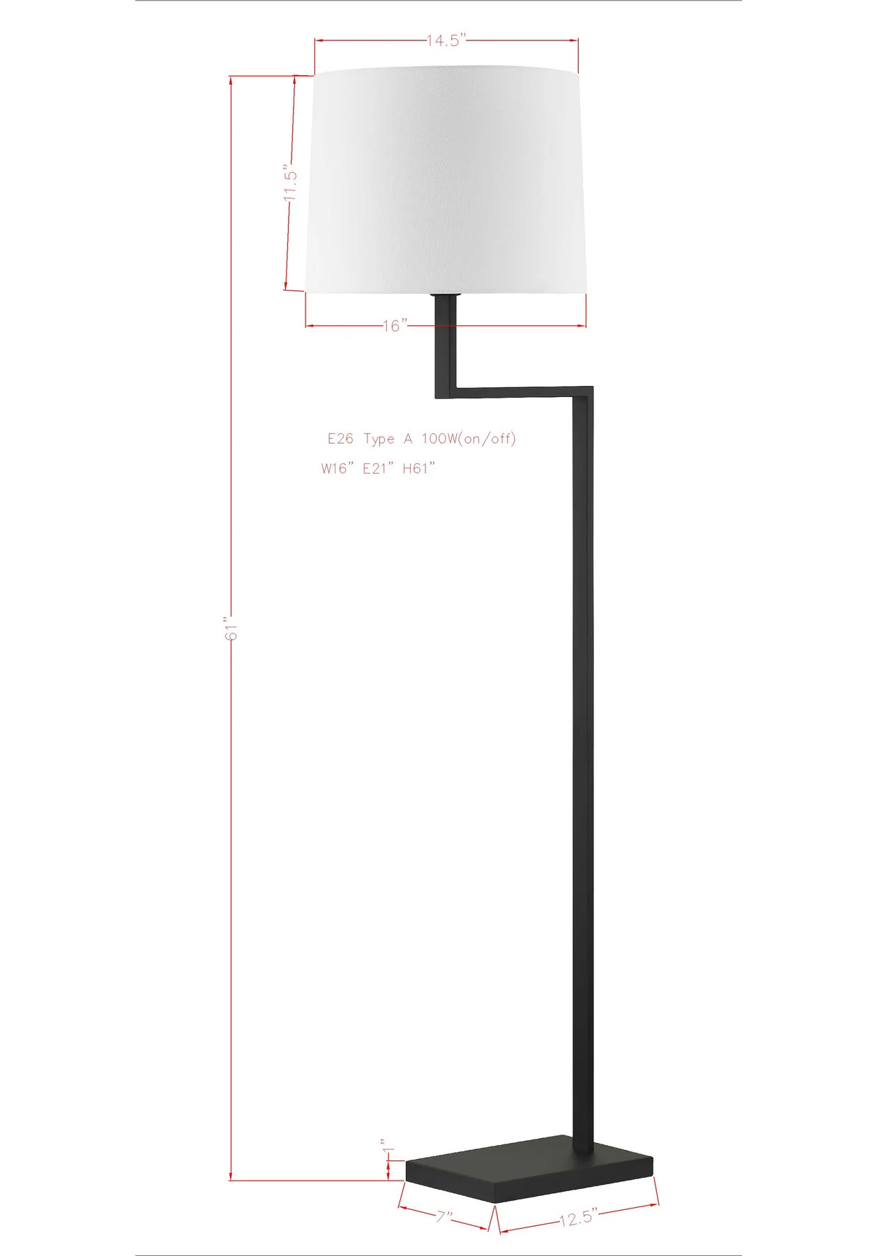 Mason Floor Lamp - A modern twist on a classic look with a geometric flair. Its squared-off silhouette, paired with a white linen shade, rectangular base, and angular body design. Finished in a sleek black, it will seamlessly fit into any space, effortlessly blending in or standing out. Ideal for those tricky spaces, its offset base allows for easy tucking under furniture.