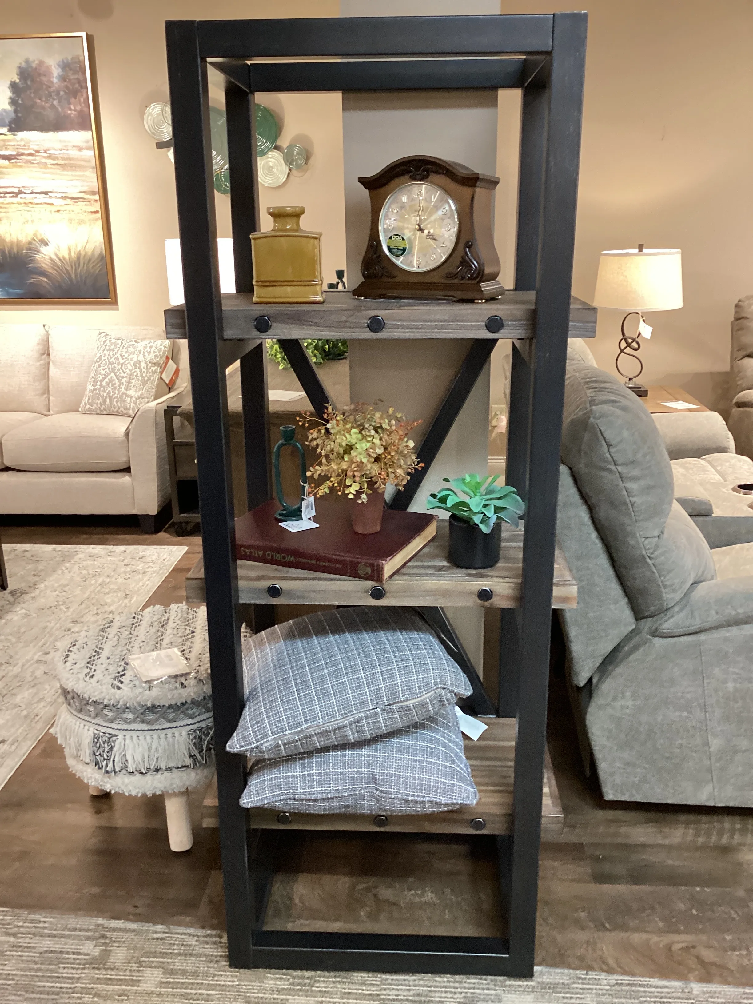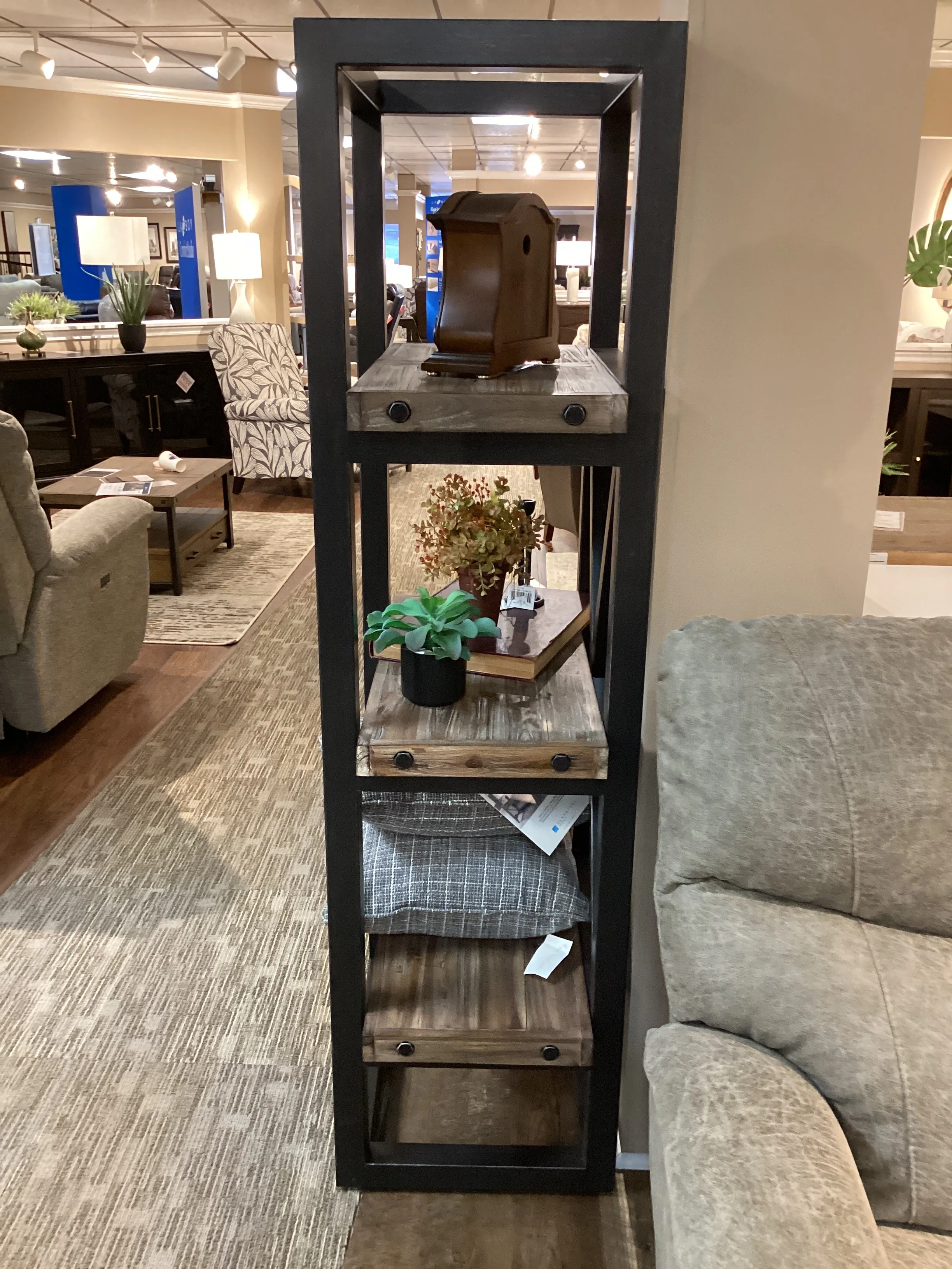 - Rustic gray finish