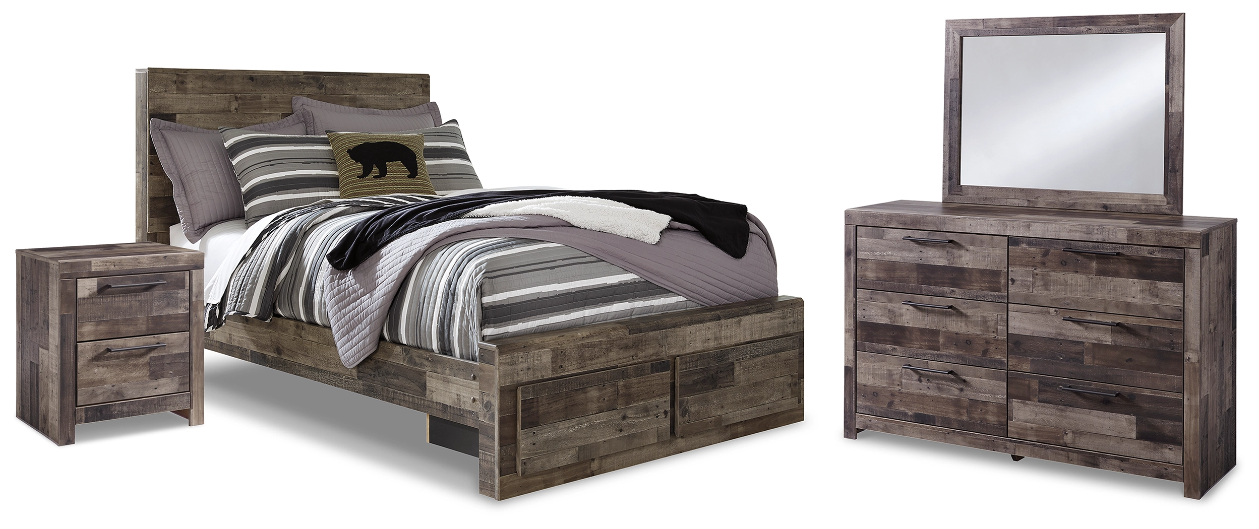 Derekson Full Panel Storage Bed, Dresser, Mirror and Nightstand