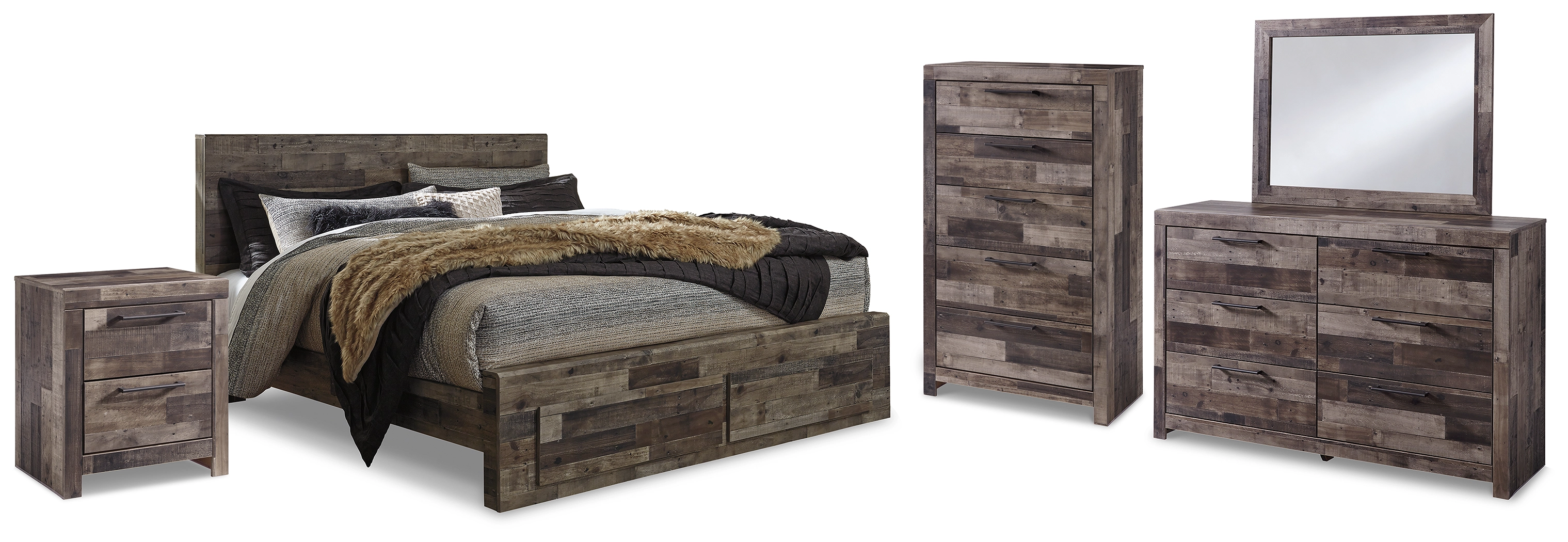 Derekson King Panel Storage Bed, Dresser, Mirror, Chest and Nightstand