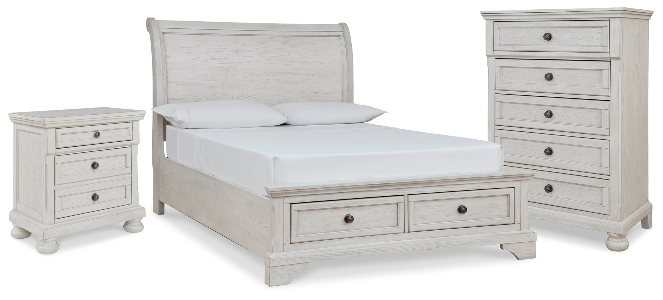 Robbinsdale Full Sleigh Storage Bed, Chest and Nightstand