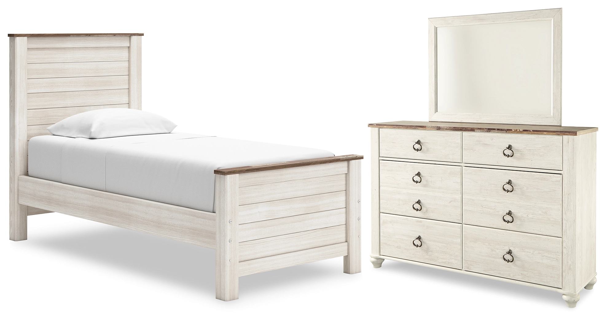 Willowton Twin Panel Bed, Dresser and Mirror