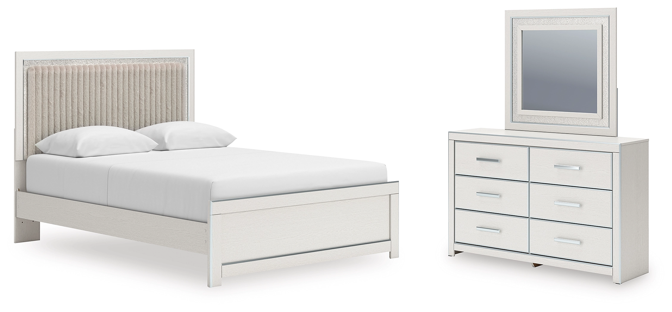 Zuraleus Queen Upholstered Panel Platform Bed, Dresser and Mirror