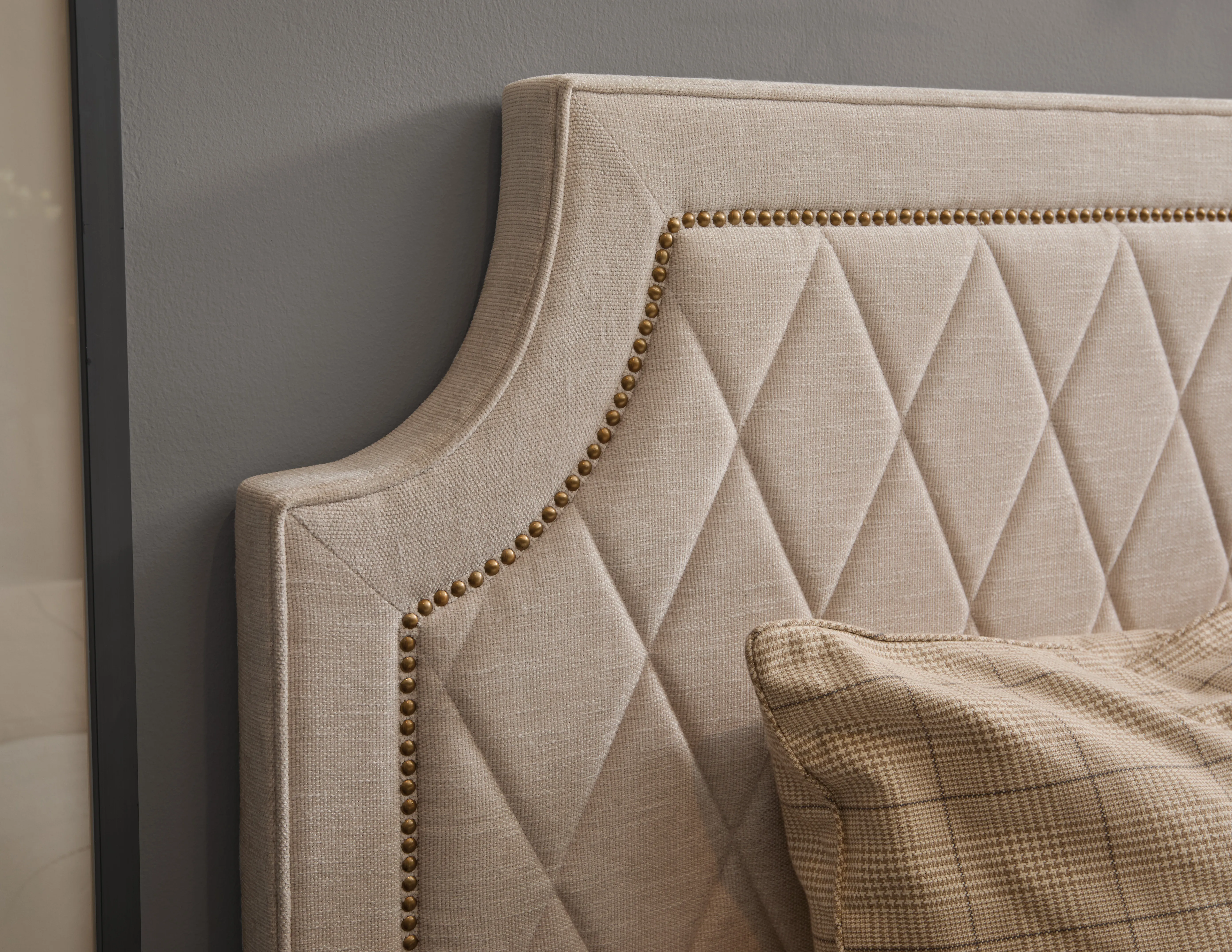- Hardware: Nailhead trim adds a decorative accent that highlights the upholstery, while a wooden base anchors the bed with warmth and structure