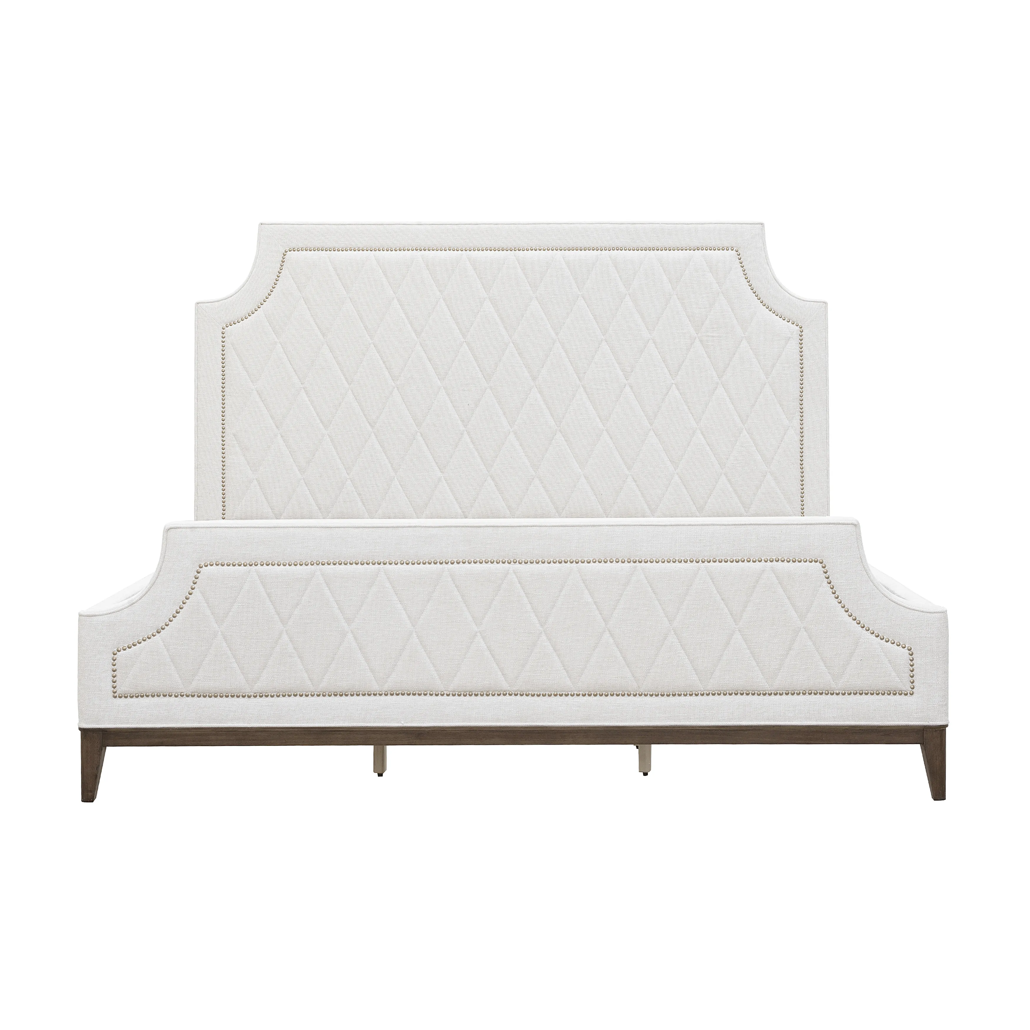 Bring timeless sophistication to the bedroom with Asher Park California King Upholstered Bed, showcasing a luxurious quilted diamond pattern for a soft, tailored look. A refined Cloud fabric is elevated with nailhead trim detailing, adding a touch of classic charm and artisanal craftsmanship. The bed is anchored by a rich wood base made from premium eucalyptus veneers in a deep Piano Brown finish, creating a warm, grounded aesthetic. Perfect for traditional and transitional interiors, this upholstered bed blends comfort, detail, and enduring style.