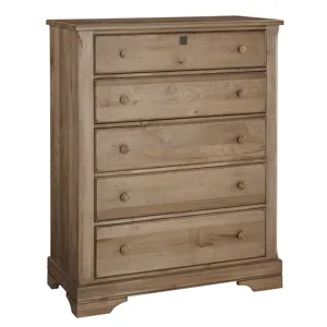 Crafted from solid maple; this chest with five drawers has the perfect mix of timeless style and strength of solid wood to become a beautiful addition to your bedroom for years to come.