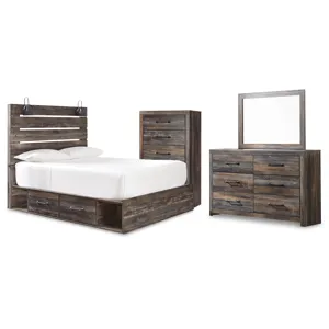 When merged in just the right way, rustic and industrial styles can make one happy marriage. Case in point: this dresser and mirror set. A refined take on barn board beauty, its complex, replicated wood grain showcases hints of burnt orange and teal tones for a sense of weatherworn authenticity. Elongated metal drawer pulls elevate the aesthetic.