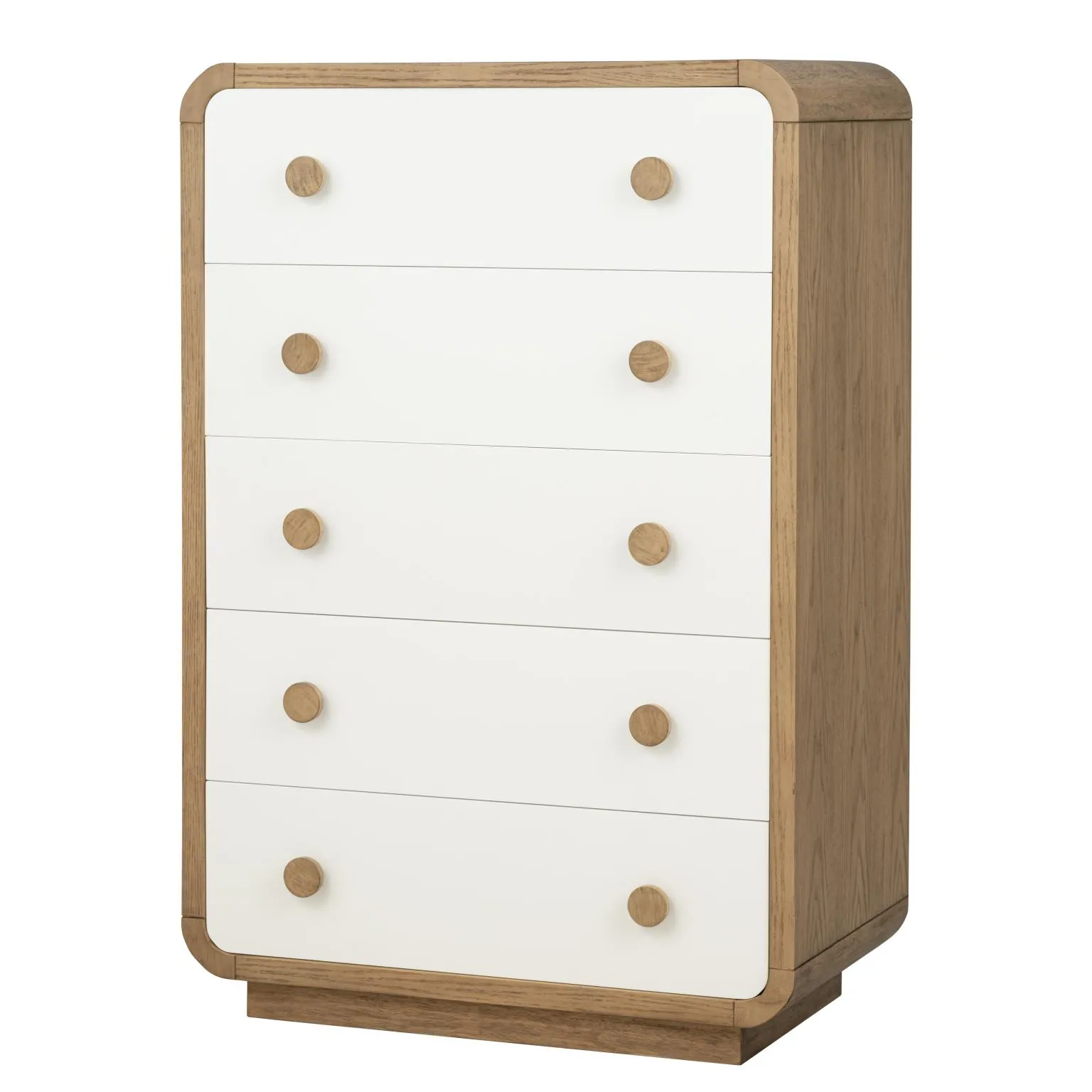 Margot brings a versatile, transitional style to any youth or second bedroom, blending classic comfort with modern charm. A beautifully balanced two-tone finish in Desert Oak and Cloud White creates a warm yet airy look, crafted with White Oak and Birch Veneers over select hardwood solids for lasting durability. With its gently curved forms and soft neutral palette, the Margot collection offers comfort, style, and flexibility - perfect for growing kids, guests, or a refined secondary space.