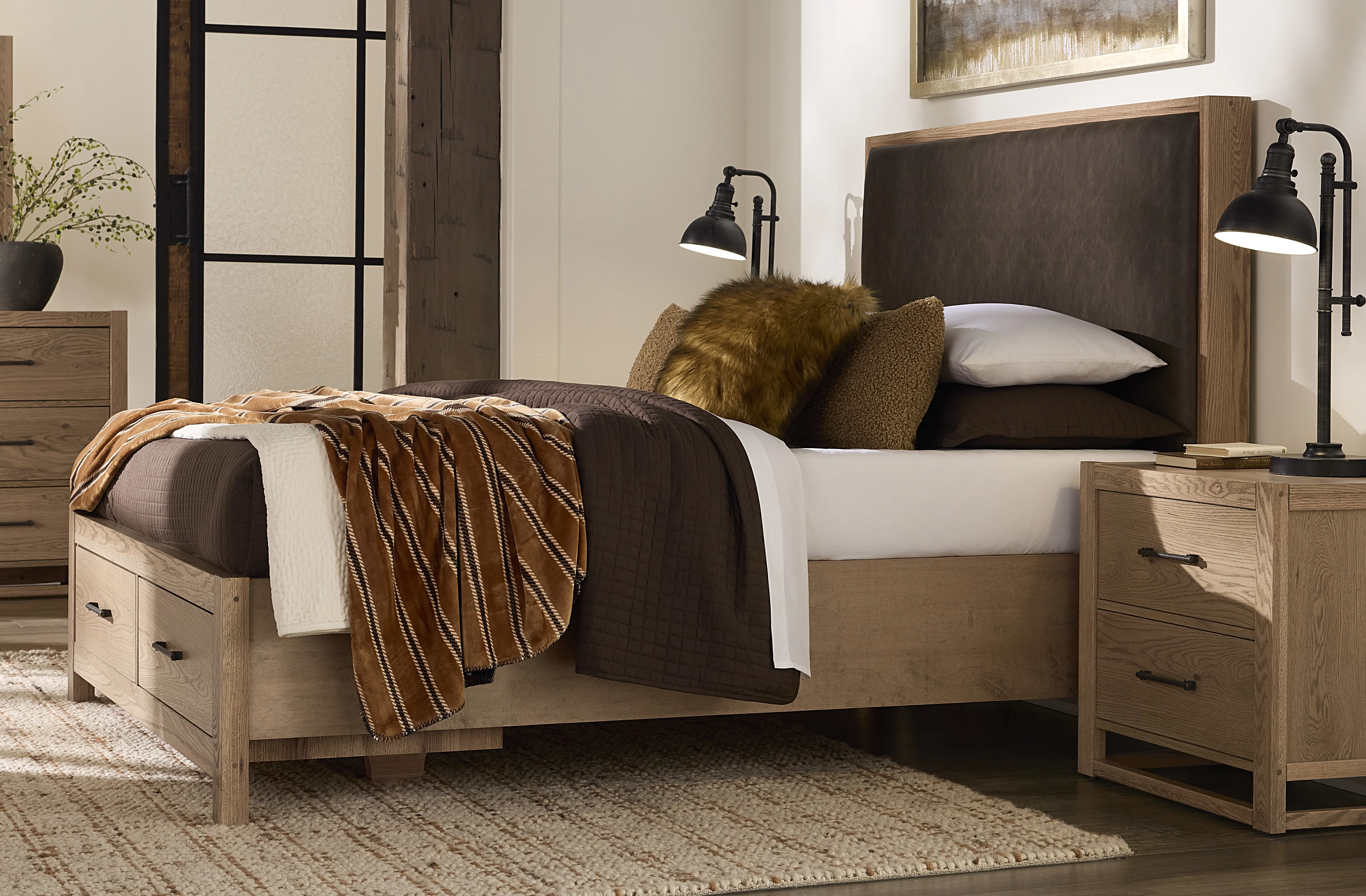 Lodge & Loft-Blond Oak Upholstered Headboard Sedona Brown - Queen