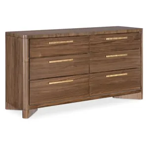 Perfectly complementing the Eleana dresser, the Eleana Landscape Mirror features a beveled edge and a plated Sunlit Bronze metal frame for a touch of understated luxury. Its versatile design and reflective surface brighten bedrooms and add a sophisticated focal point.