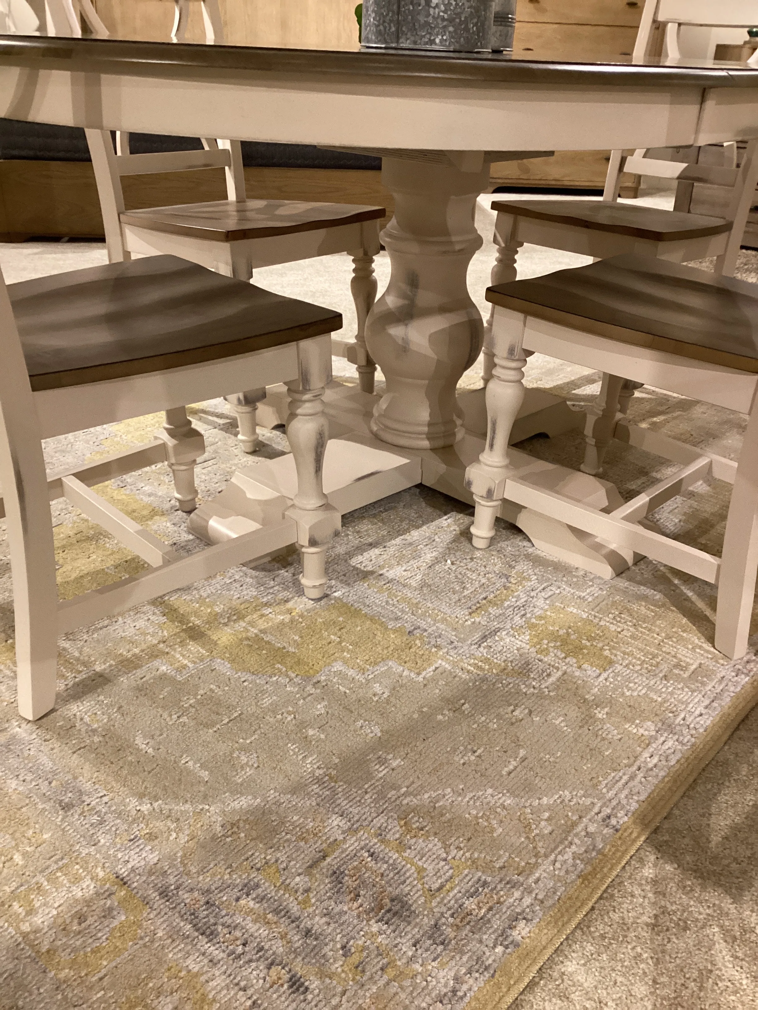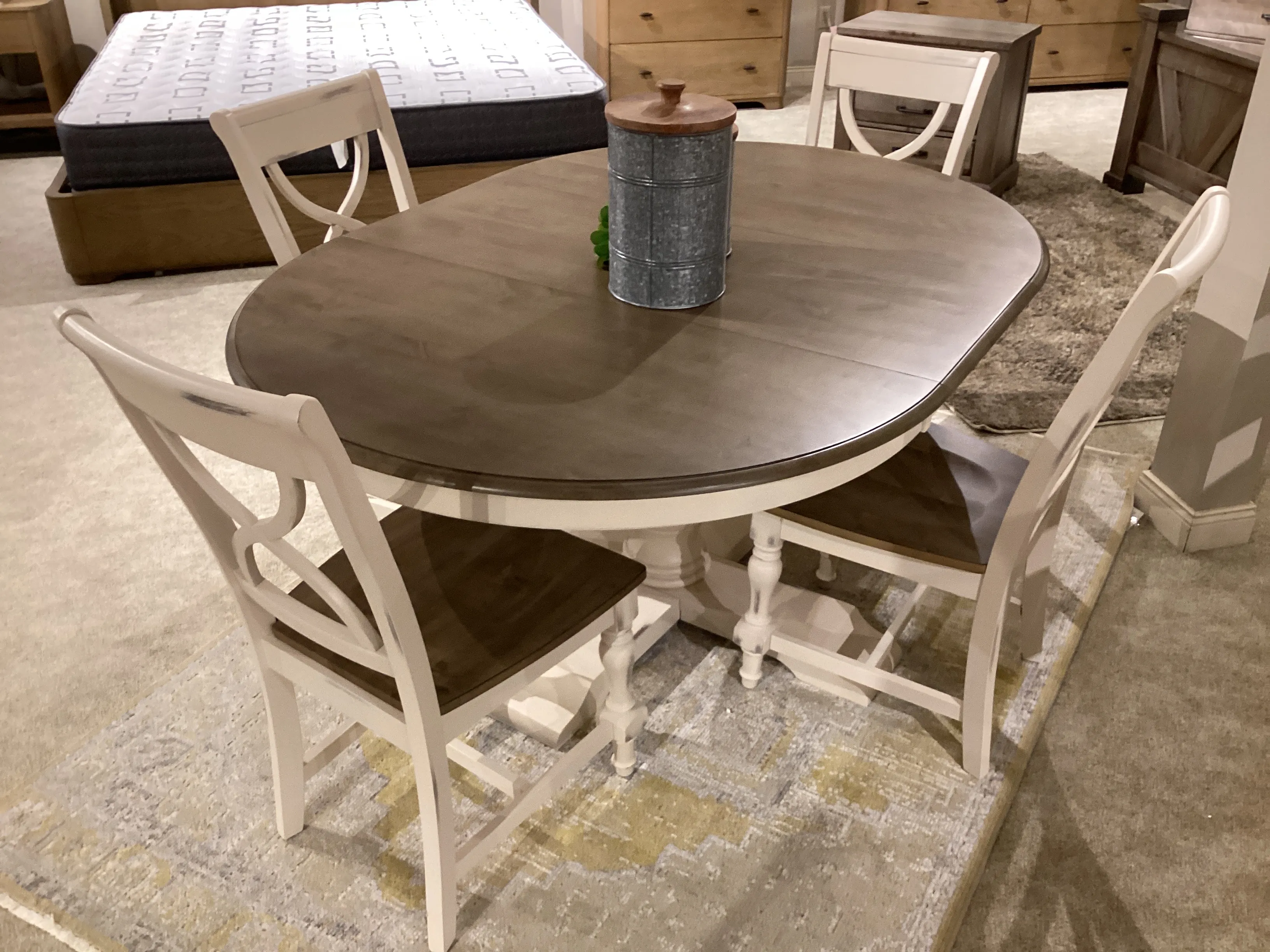 Torrance 66" Pedestal Table w/ 18" Leaf - White (DT34866GP): 48 x 66 x 30 - Solid birch and solid hardwood with curves in all the right places. Soft two toned grey and white in a wide range of table styles and wood or cushioned seating.