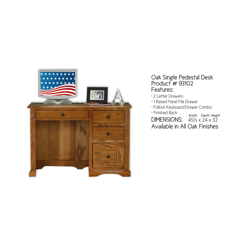 The Oak Single Pedestal Desk by American Heartland Manufacturing may be available at Wright's Furniture in the Dieterich, Robinson, Taylorville, and Effingham area. Please contact us to check availability.