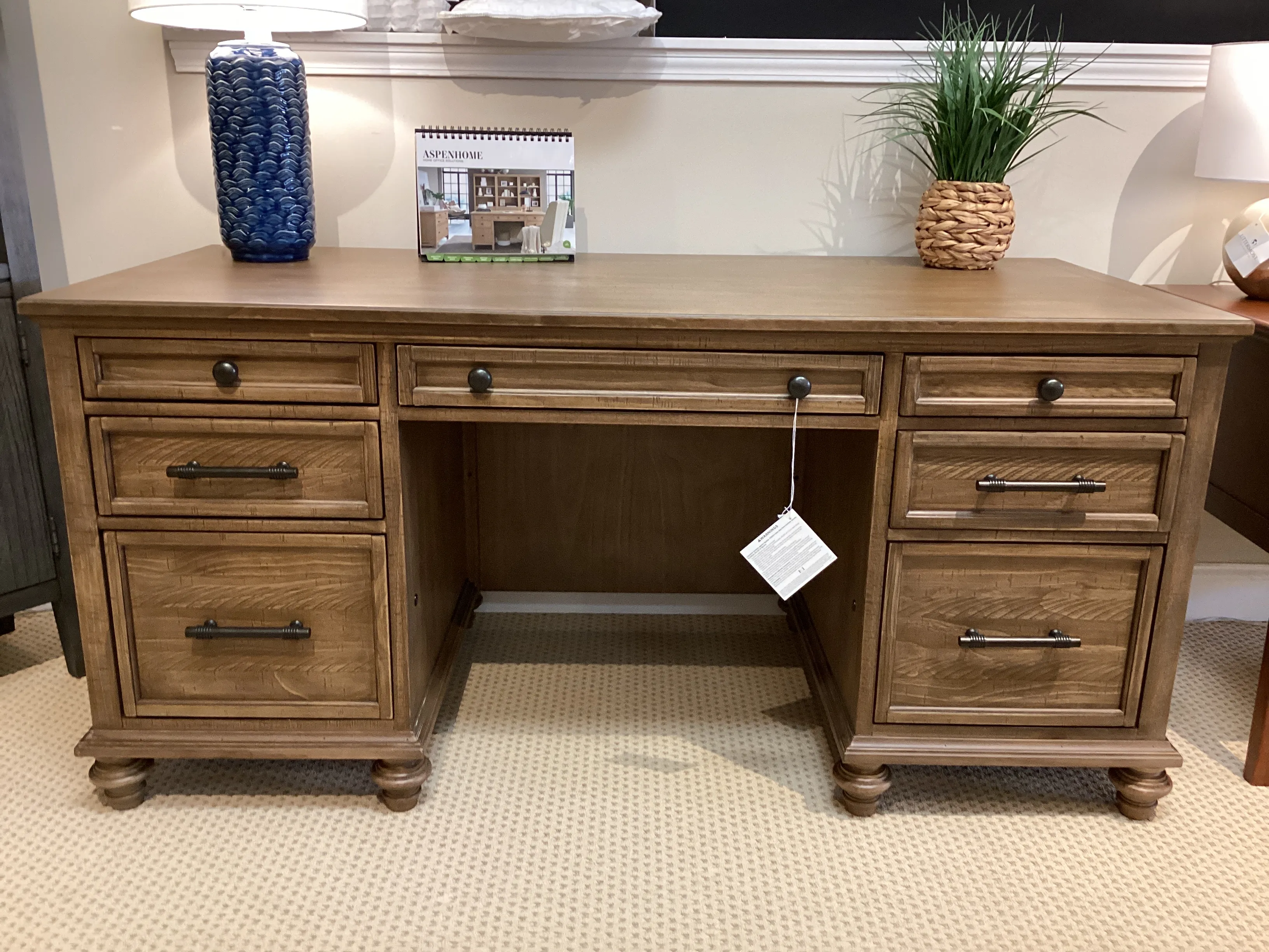 Drop Front Keyboard Drawer: Keep your desk workspace clean and organized with a convenient pullout keyboard drawer. You have the choice to use for a keyboard or storage. Dual A/C Outlets: Conveniently placed outlets to keep your devices powered. Locking File Drawers: Keeping your important documents under lock and key! Dovetail Joinery: A construction technique that will ensure long-lasting strength and durability. Full Extension, Steel Ball Bearing Drawer Slides: Premium full extension, steel ball bearing drawer slides provide quiet, smooth and reliable drawer function. The low friction steel slides are designed to withstand daily use. Cord Management: Engineered to allow cords to pass through the furniture to an outlet.
