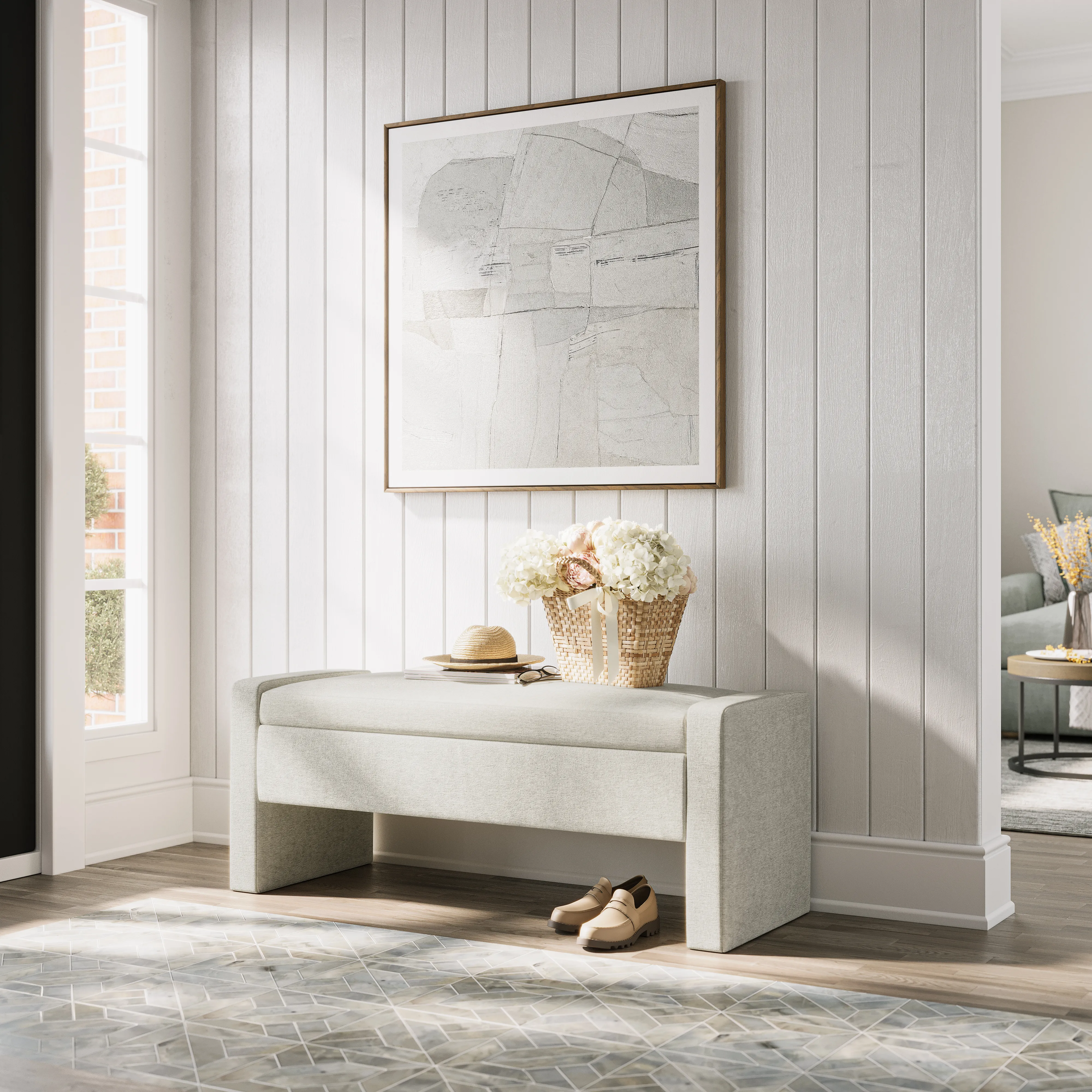 Elevate your hallway, living room, or bedroom with the Braun 48" Storage Bench. Boasting plush upholstery and a sleek mid-century modern design, this bench adds both style and functionality to your space. Arriving at your home fully assembled, the lift top seat reveals a spacious storage area, providing a convenient hideaway for your belongings. Whether it's blankets, shoes, or other essentials, the storage space offers ample room to keep your living area tidy and organized. With its versatile design and comfortable seating, the Braun 48" Storage Bench is a must-have addition that effortlessly combines fashion and practicality. Create a chic and clutter-free environment with this stylish storage solution your family will adore.
