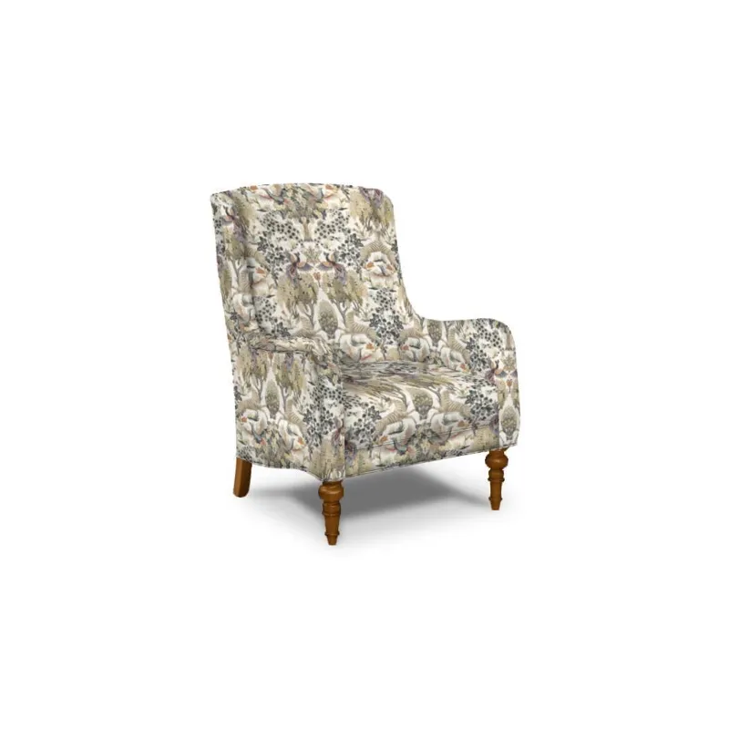A beautifully tall and elegant piece, this chair from the Paula Deen Home collection has it all. Comfort, easy care and of course- plenty of personality! It features a gentle wing back design that flows gracefully down to the dip of the arms. It has a plush tight back and seat, that keep it looking crisp and neat, and high turned legs. Makes a stunning addition to any home.