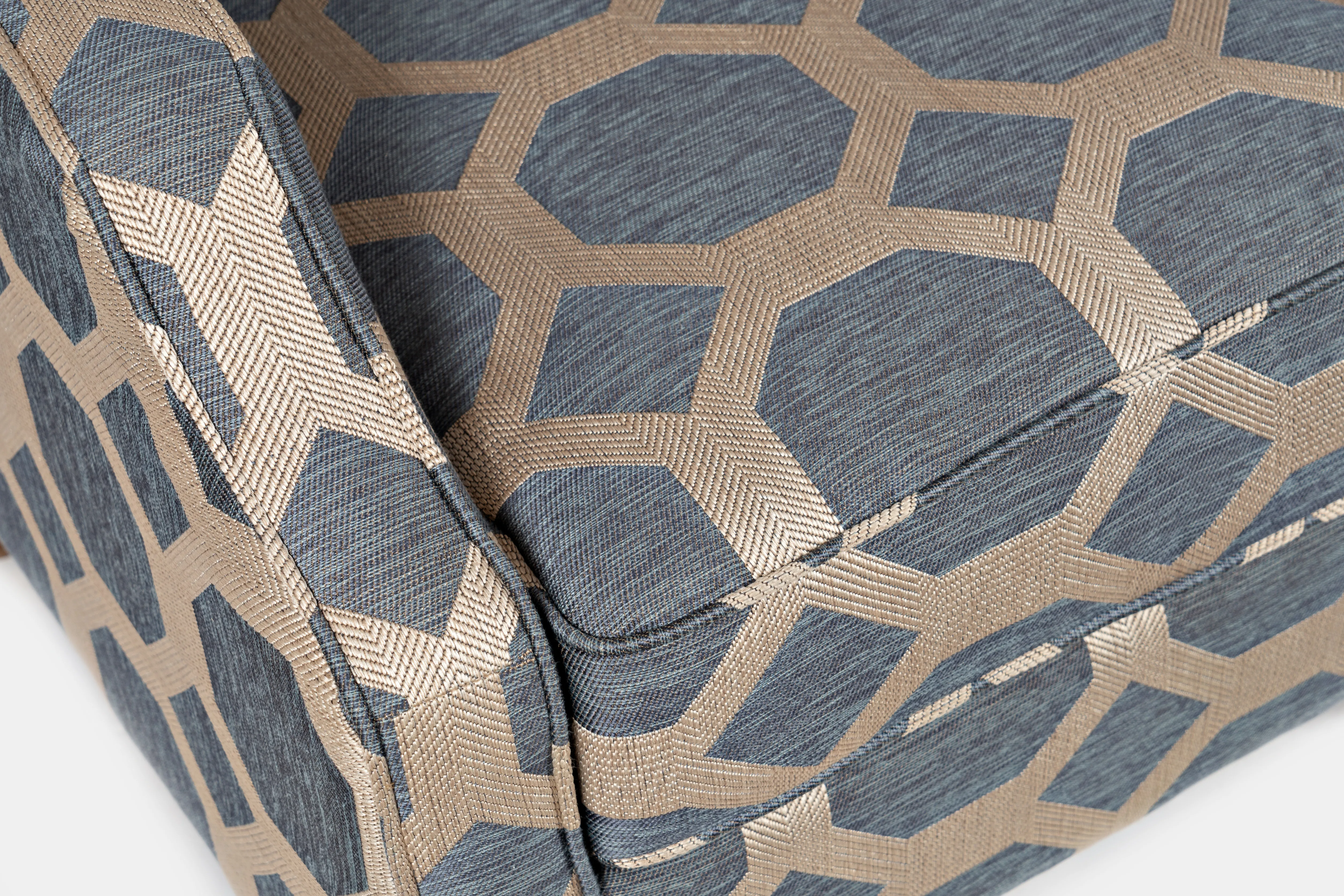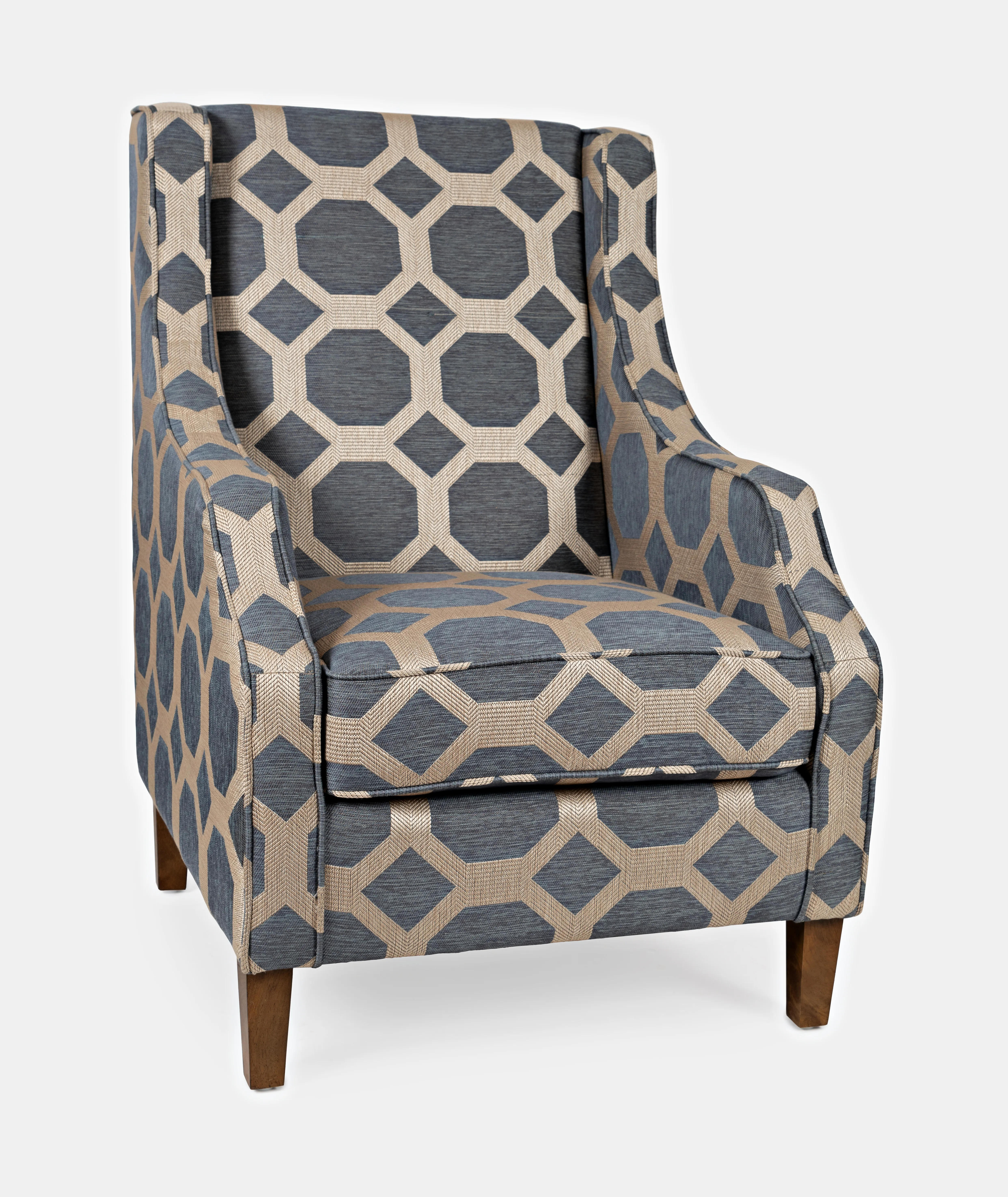The elegant angled style and unique fabric of the Sanders accent chair has a transitional finish with subtle luxe highlights. Mixing the best of both worlds, the classic feel of the chair is given an exciting new look with a bold geometric pattern. Available in Two Fabric Finishes.