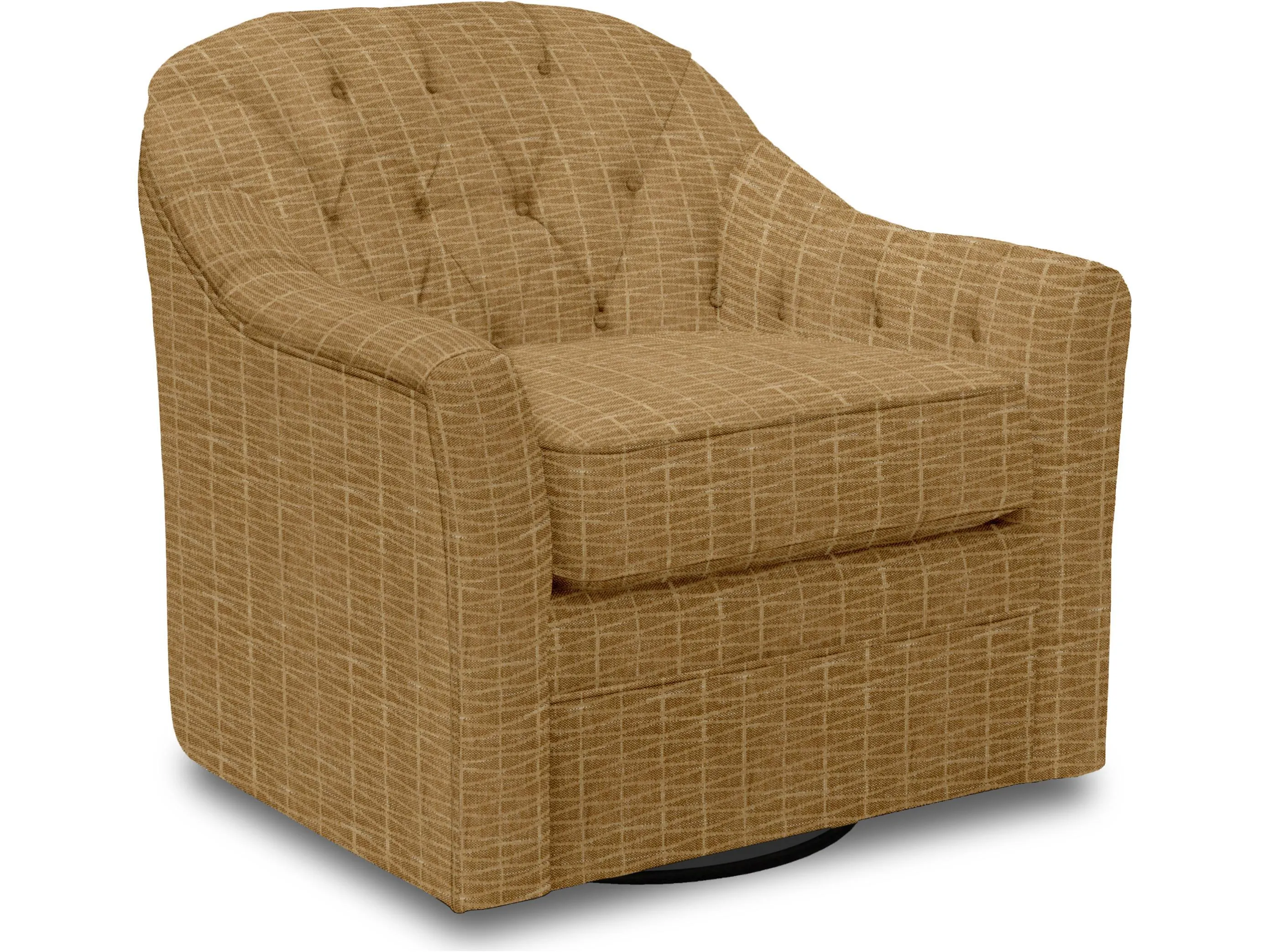 England's Adalie swivel gliding chair has an undoubtedly sophisticated flair. Its flared arm, chic tufted back, and comfortable seat make it a welcome addition to any home. Choose from 400+ fabrics to make it all your own!