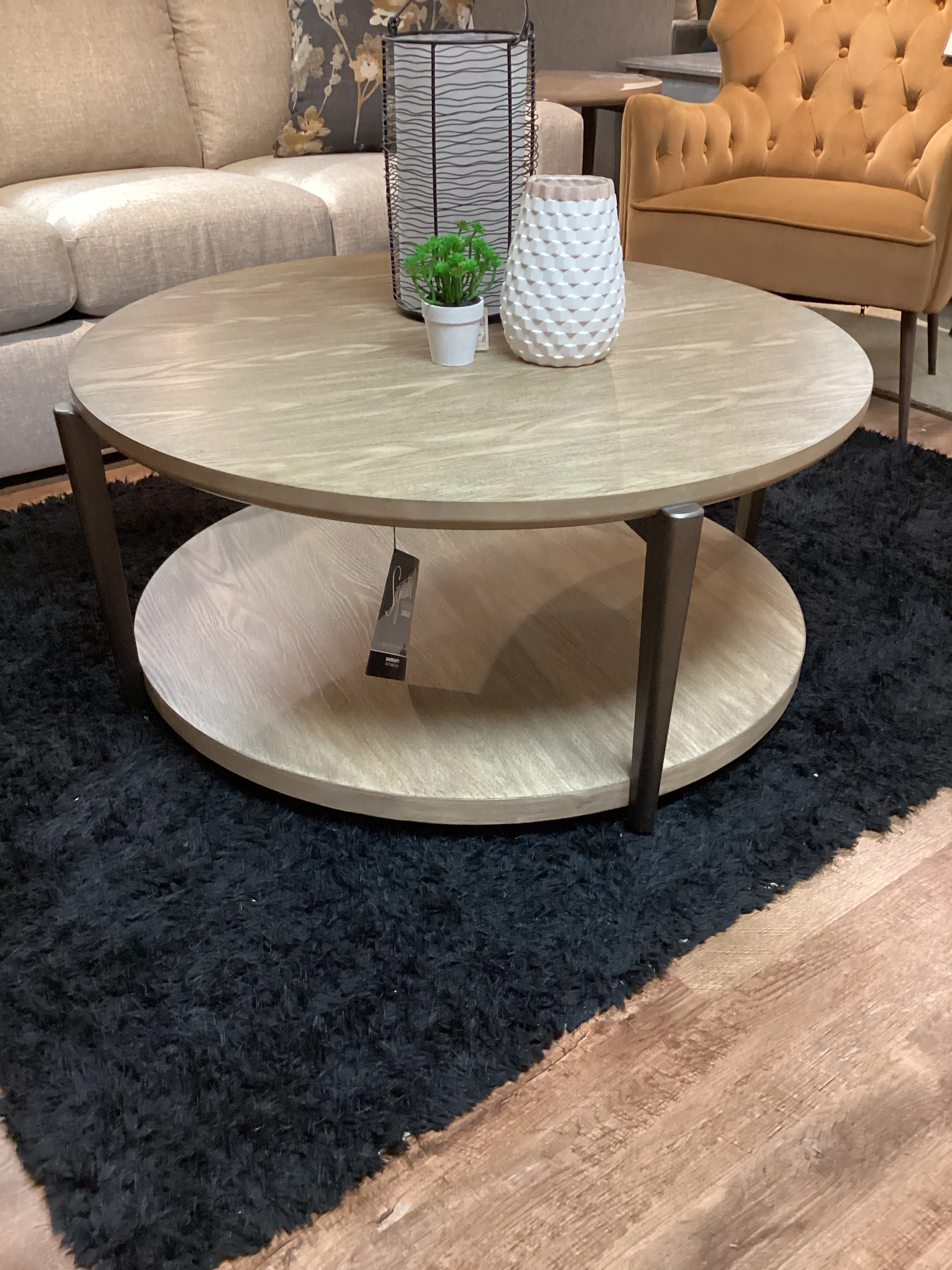 Merging industrial and contemporary elements, this coffee table turns display space into an art form. The whitish brown wood-tone finish is right on trend, while contrasting painted metallic legs offer a modern touch of stripped-back beauty. With its streamlined design, this table proves that less is more.