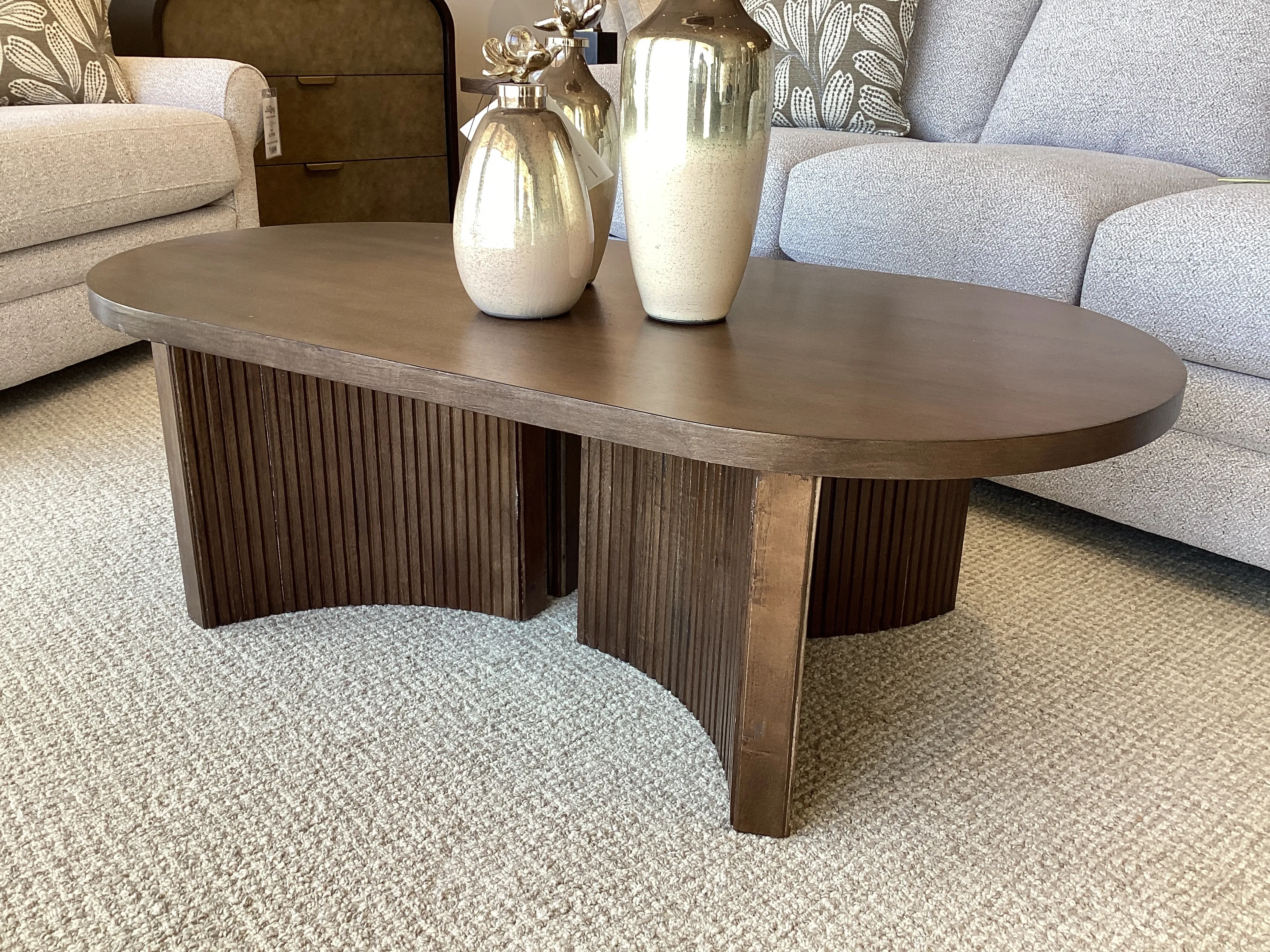 This coffee table exemplifies casual contemporary design with an urban vibe. Its rich brown finish is warm and inviting, and decor looks that much sleeker when displayed on the thick tabletop. A trend-right reeded base subtly nods to mid-century modern design. What a stunning reflection of your simple-meets-elegant sensibility.
