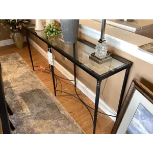 Gracefully Arched Hand Forged Metal Finished In Sleek Satin Black. Top Is Clear Beveled Tempered Glass.