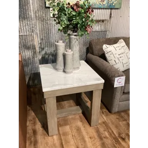 This sofa table is simple in design but big on style. Finished with a trend-right grayish brown wood tone, its bold, blocky profile and natural marble top are timeless classic choices that is ideal for pairing with an ottoman underneath to pull extra seating into the room or remaining clean and sleek on its own. Adding to its beauty, the marble top's color variations, fissures, mineral deposits and veining are naturally formed and are not defects.