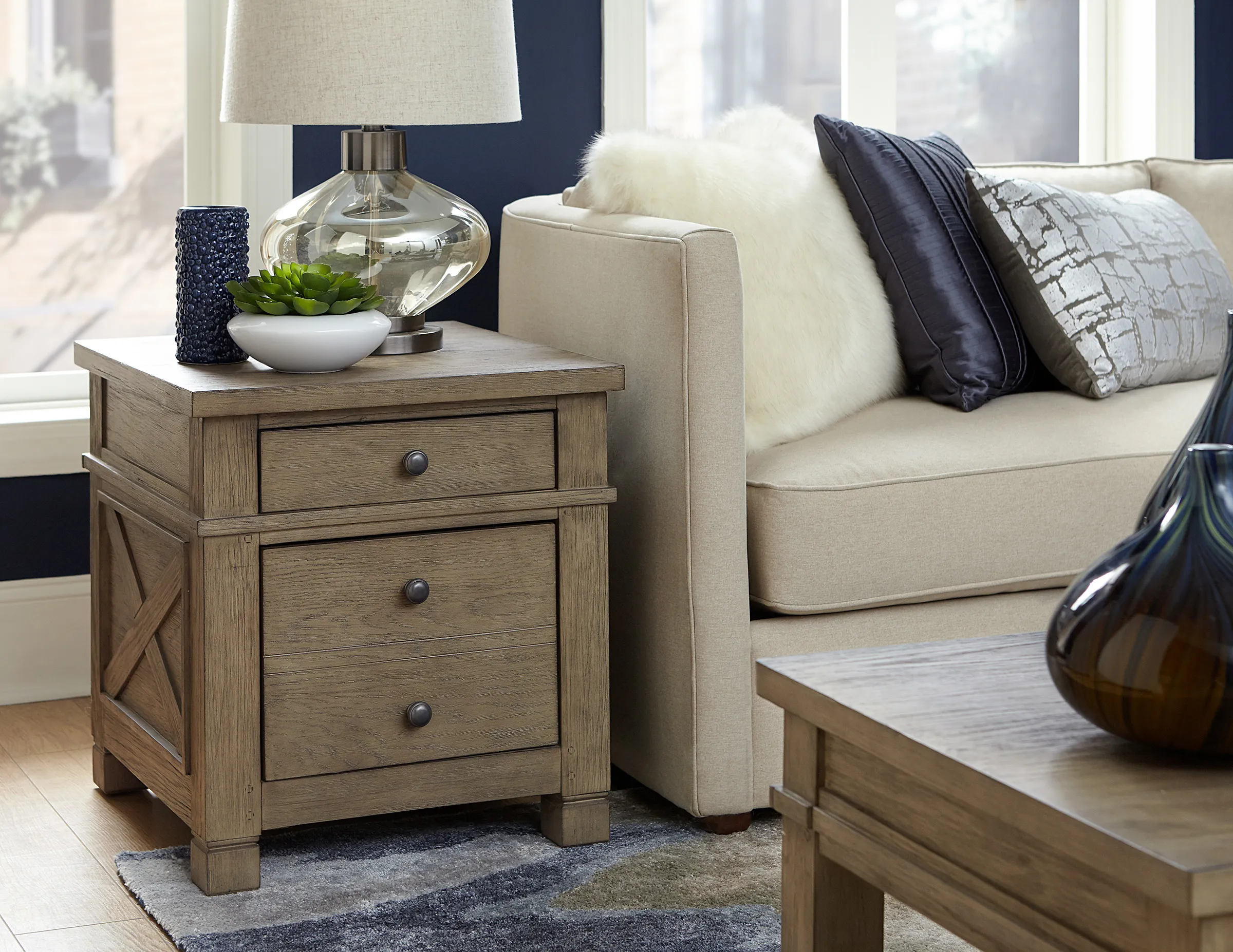 Our Tucker collection is a versatile collection that lives up to its industrial inspiration. Accented by an attractive stone finish and alluring gunmetal hardware, the Tucker collection will make it easy to express your style, your way.
