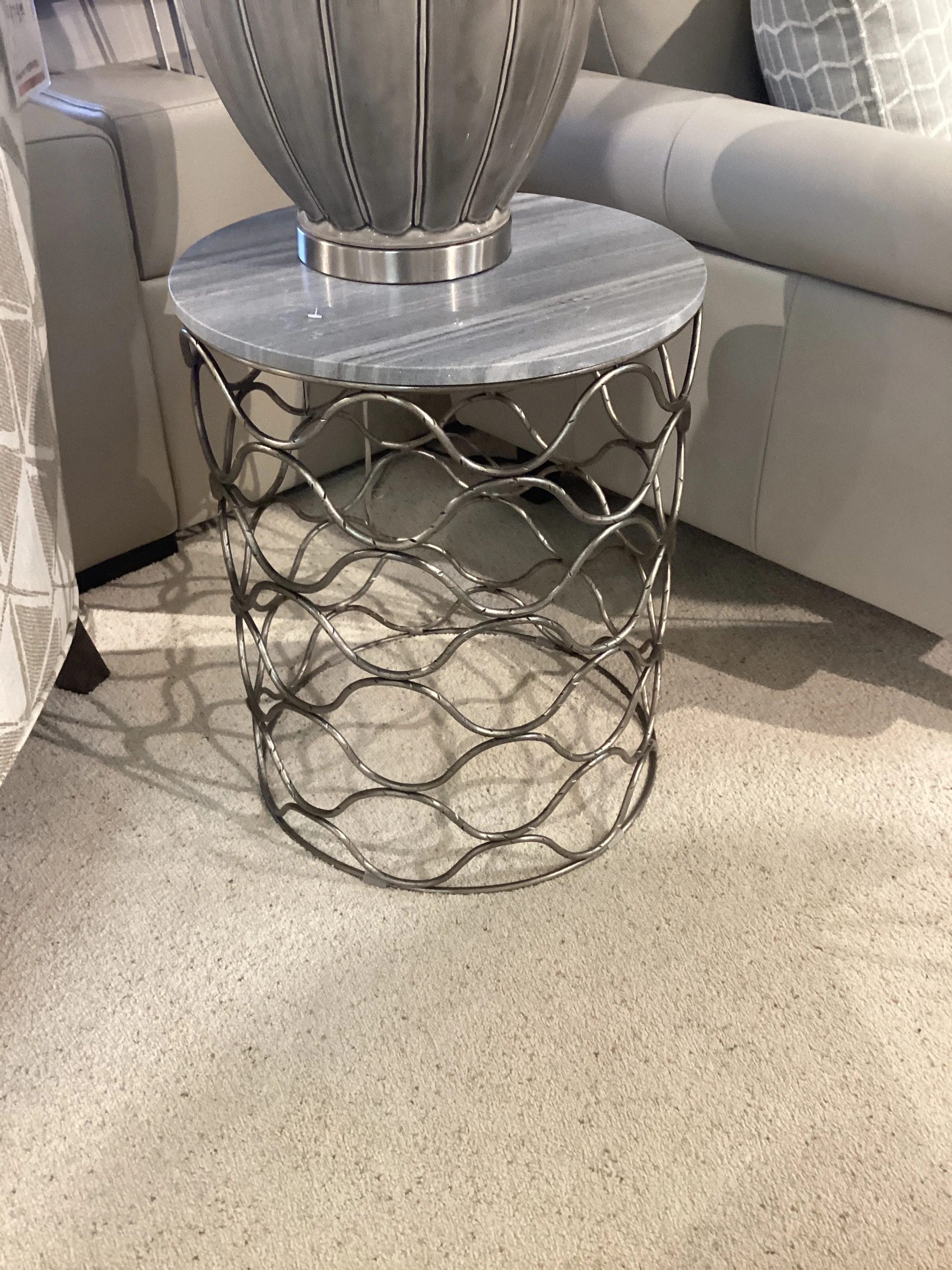 Bengal Manor Solid Iron Accent Table In Nickel Finish W/ Grey Marble Top