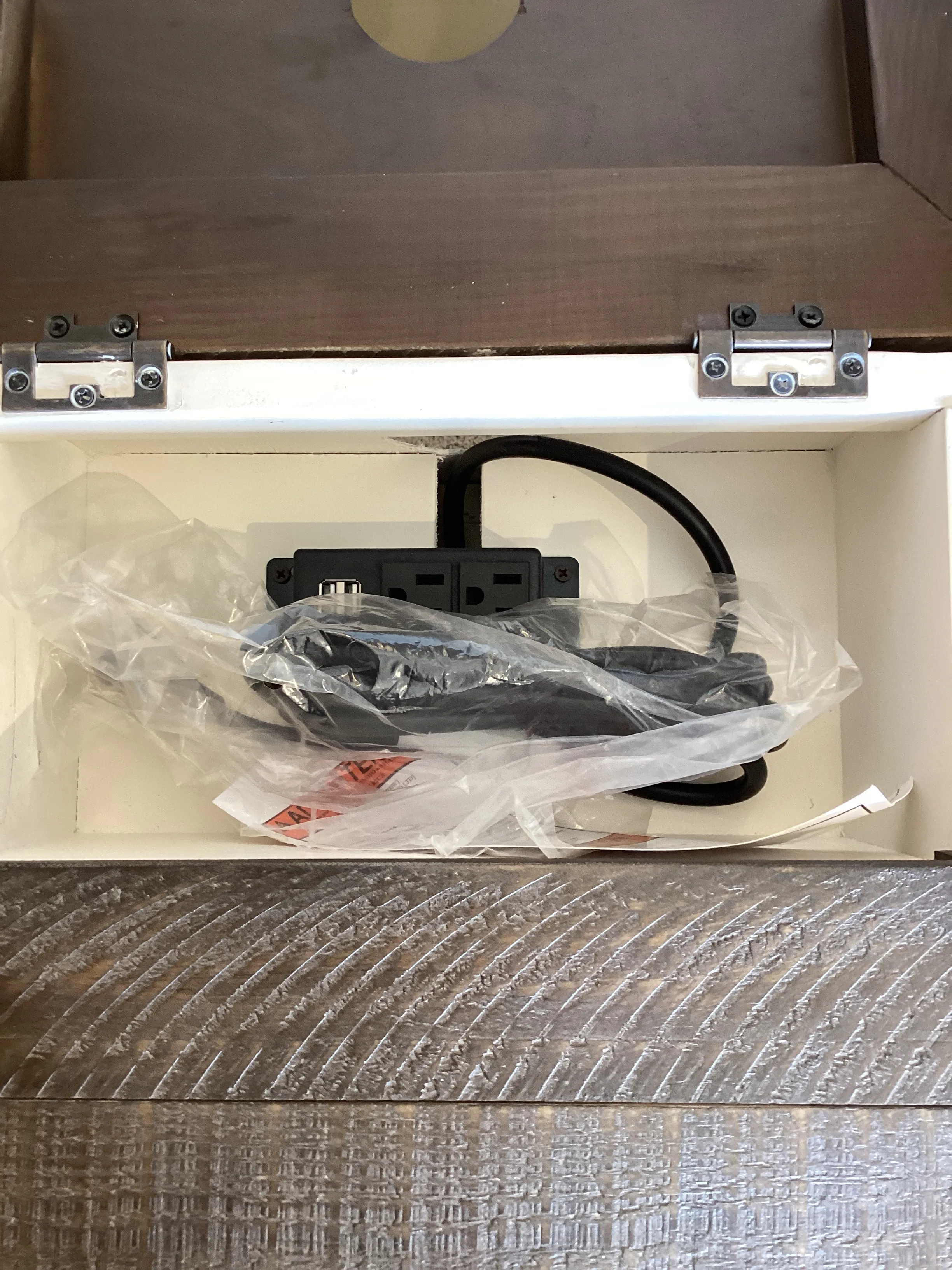 - -Drawer Dimensions: 7.75"W x 15.25"D x 4"H -Power unit includes (2) outlets and (2) USB ports -Finished back -Tasteful distressing and subtle finished variations should be expected and enjoyed. -For residential use only - -