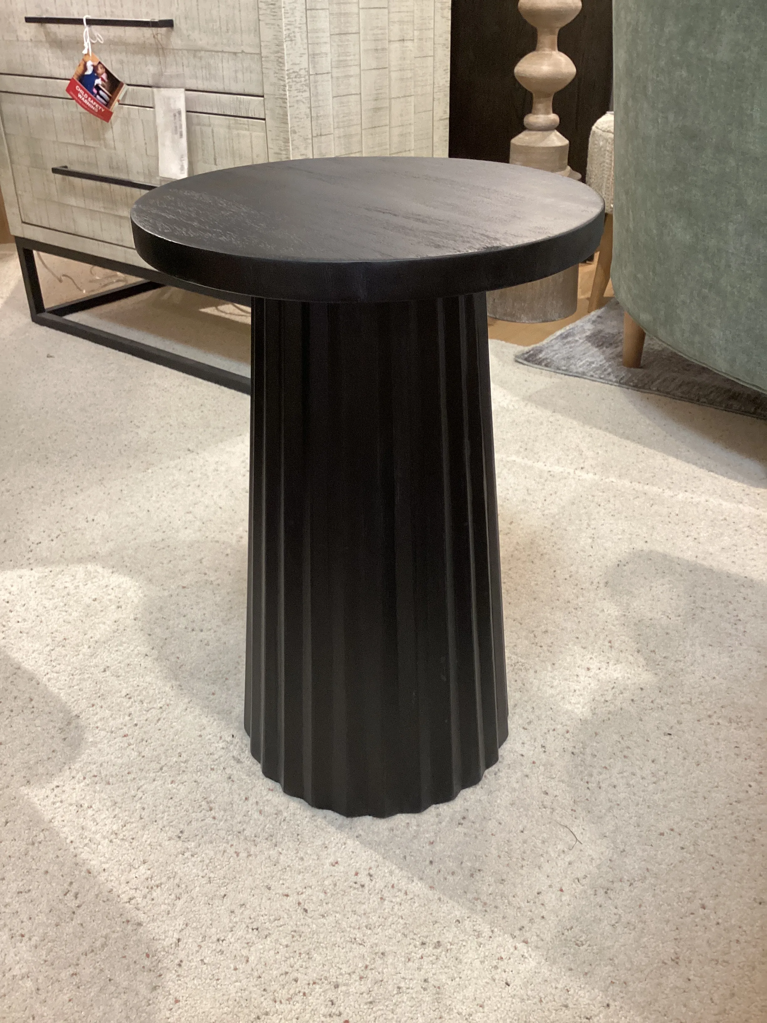 Show off your trend-right sensibilities with this contemporary accent table. Designed for the modern tastemaker, the solid wood piece wows with a fluted base. This organic beauty can be used on its own or grouped with other pieces in the collection. How’s that for form and function?