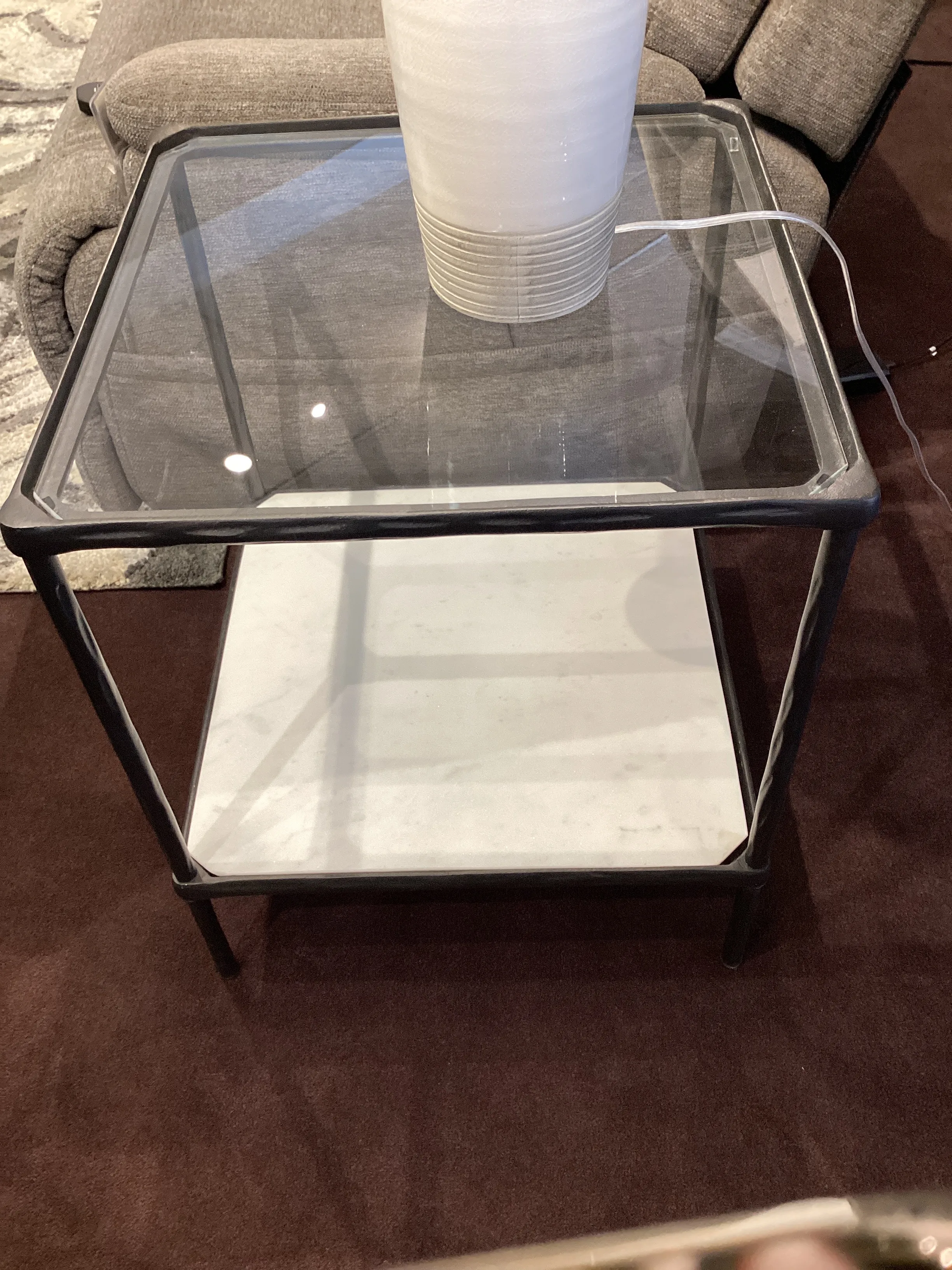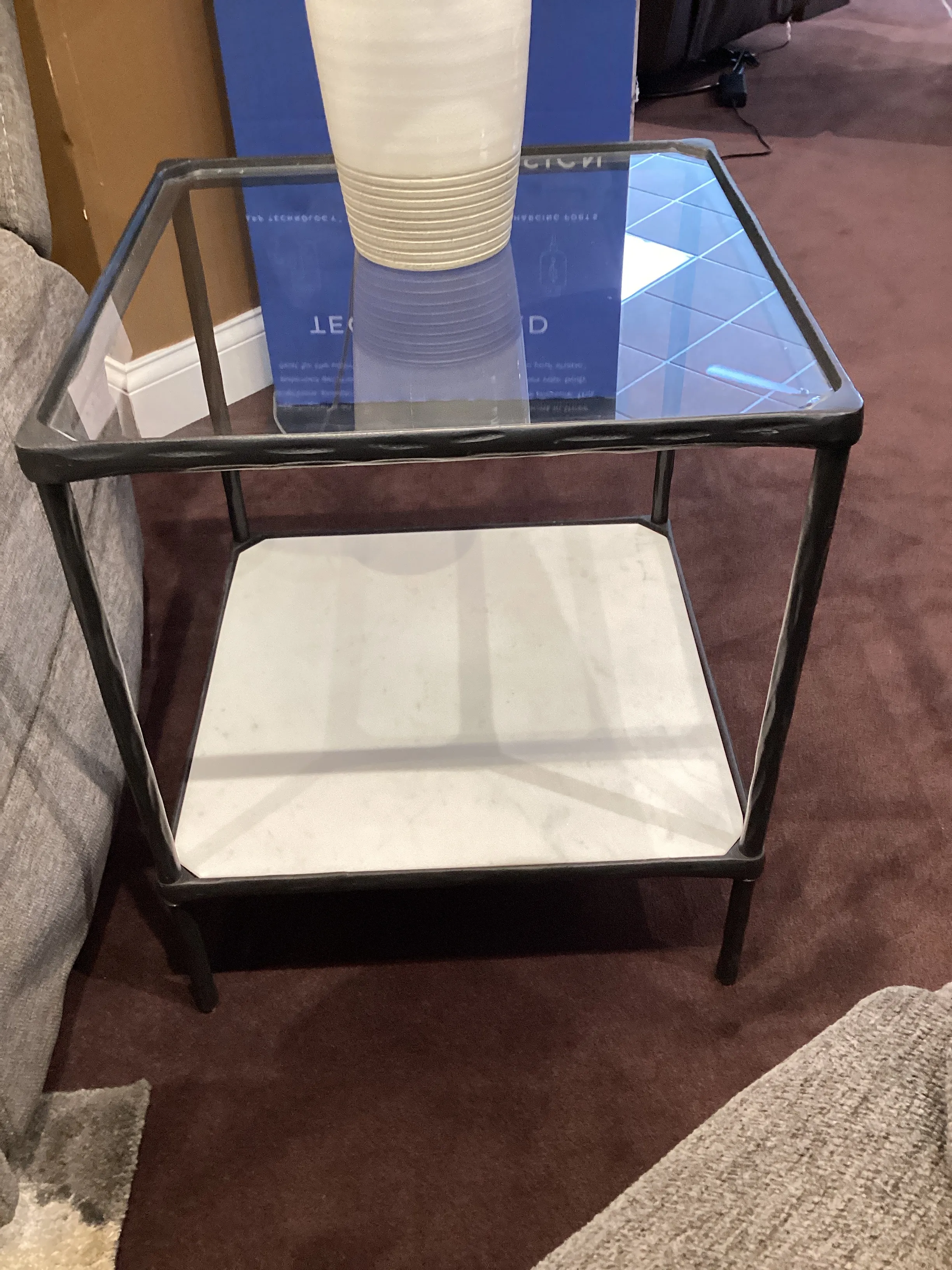 Classic in design with a dash of textural appeal, this accent table provides both flair and function. The glass tabletop offers the perfect perch for a lamp, while the white marble lower shelf is ideal for resting trendy coffee table books and other decorative pieces. An antiqued brass-tone finish on the frame has a rustically luxe look that remains versatile, suiting spaces from casual to contemporary.