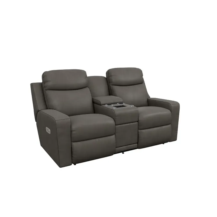 The Emmons Reclining Loveseat with Headrest, Lumbar and Console is cool, cozy, and handy. Track arms and exposed wings add bold style. Soft backs and sleek chaise seats offer head-to-toe adjustable comfort. Cups, remotes, and relaxation are in reach!