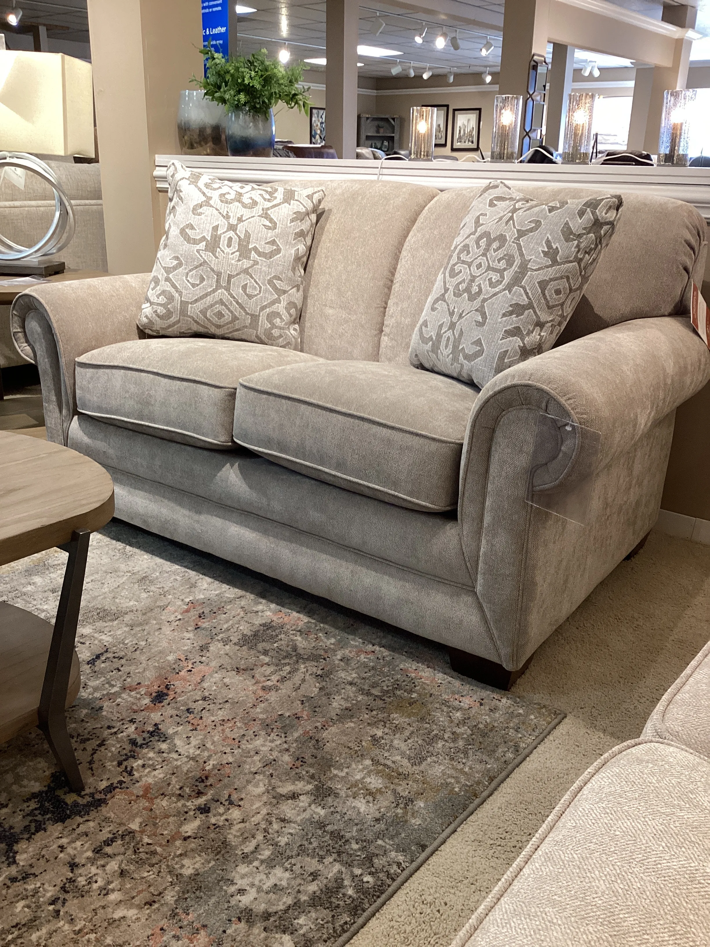 Timeless and on-trend, the Mackenzie Loveseat features a sophisticated look that blends easily with your existing pieces. Its rolled, pleated arms, foam back and ComfortCore® cushions deliver just the right amount of comfort and support for a short or a long sit. Decorative wood legs add a touch of tradition to complete the look. Make it yours with your choice of fabrics and other available upgrades. Includes two 20" accent pillows. A matching ottoman is available separately.