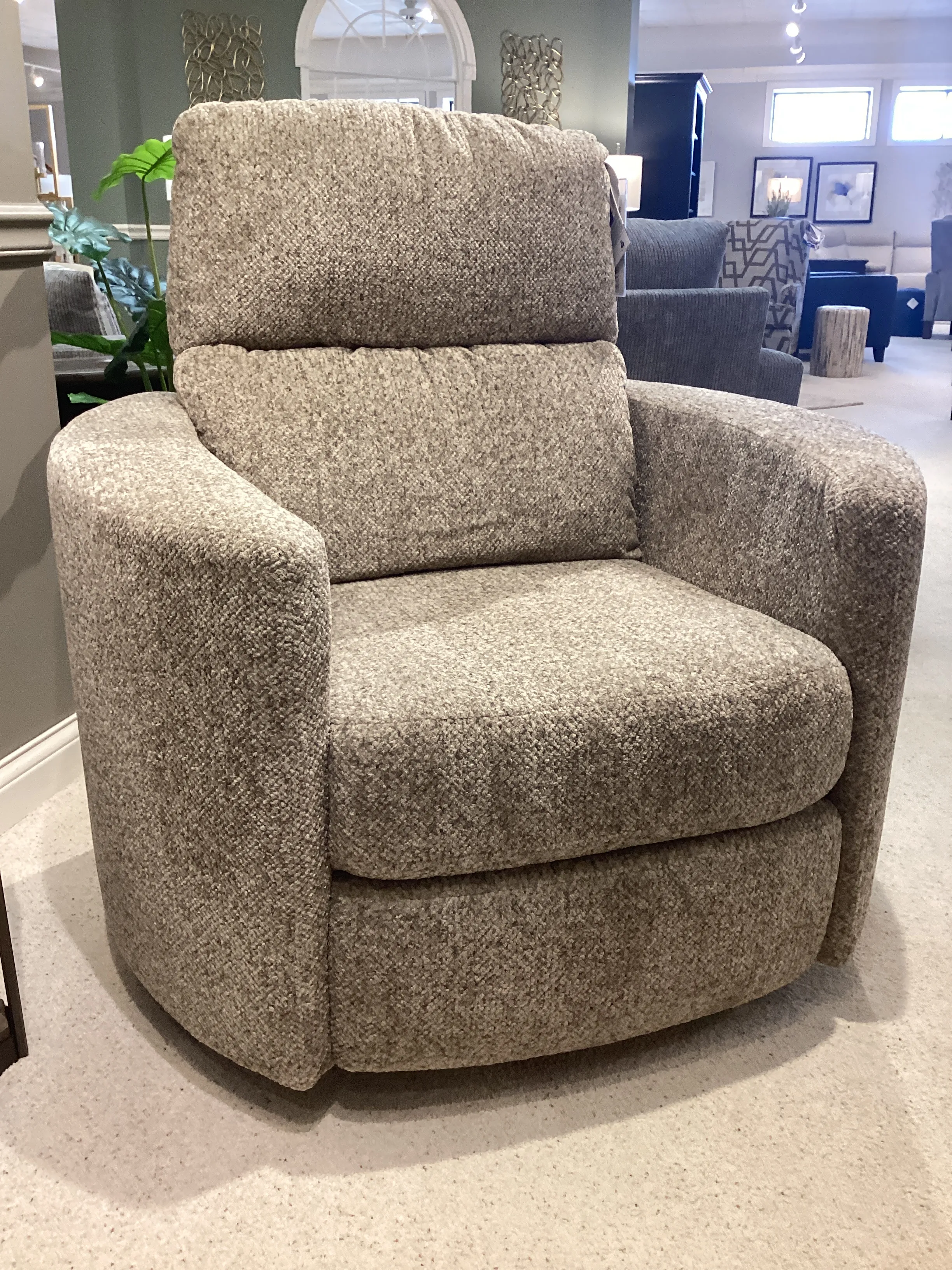 The Corllini Swivel Recliner is where style and comfort form a modern blend. Enjoy an effortless swivel action, while the reclining feature is a hidden perk! Push back on the arms for an easy recline ability, or upgrade to power with a stylish touch button feature.