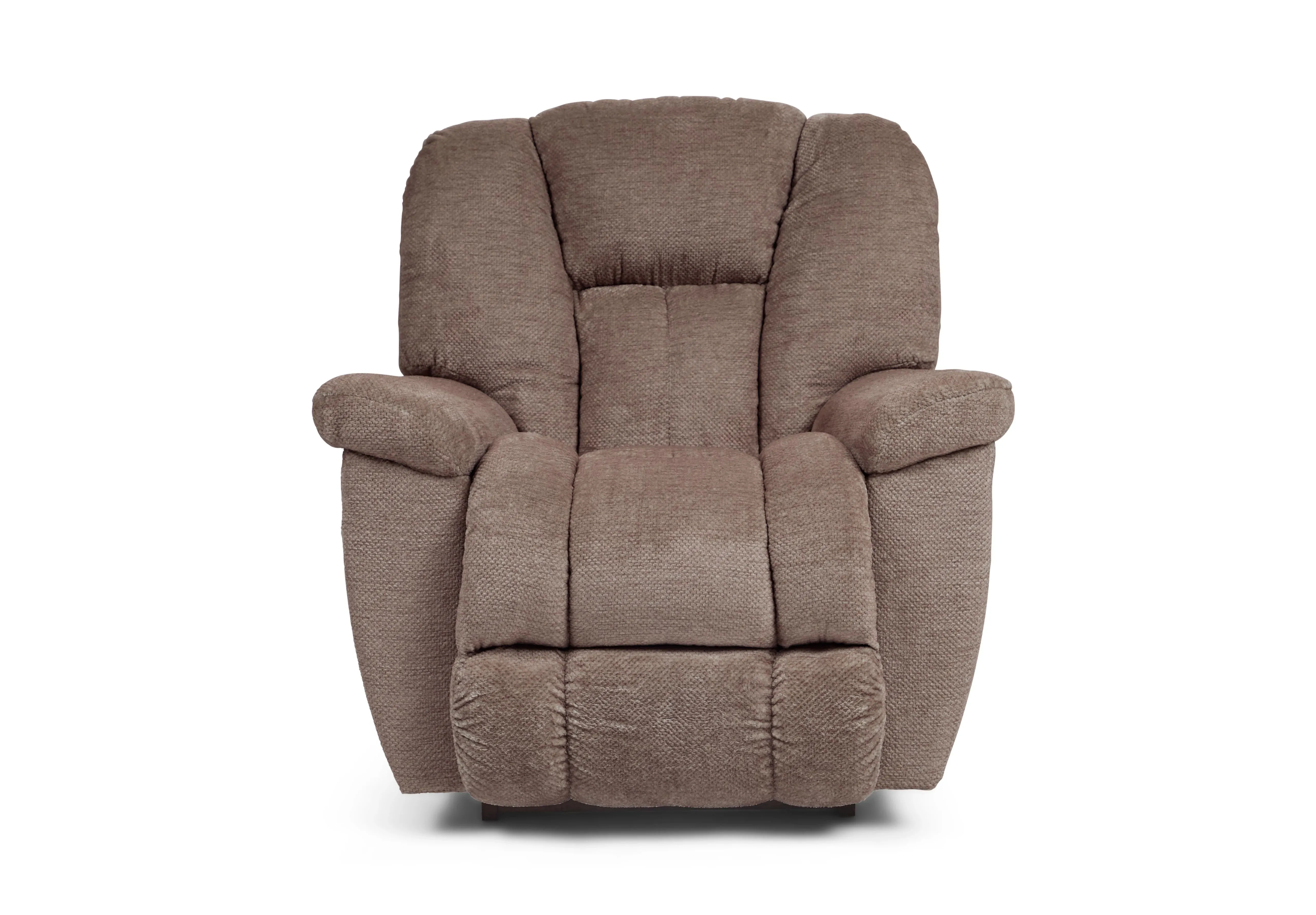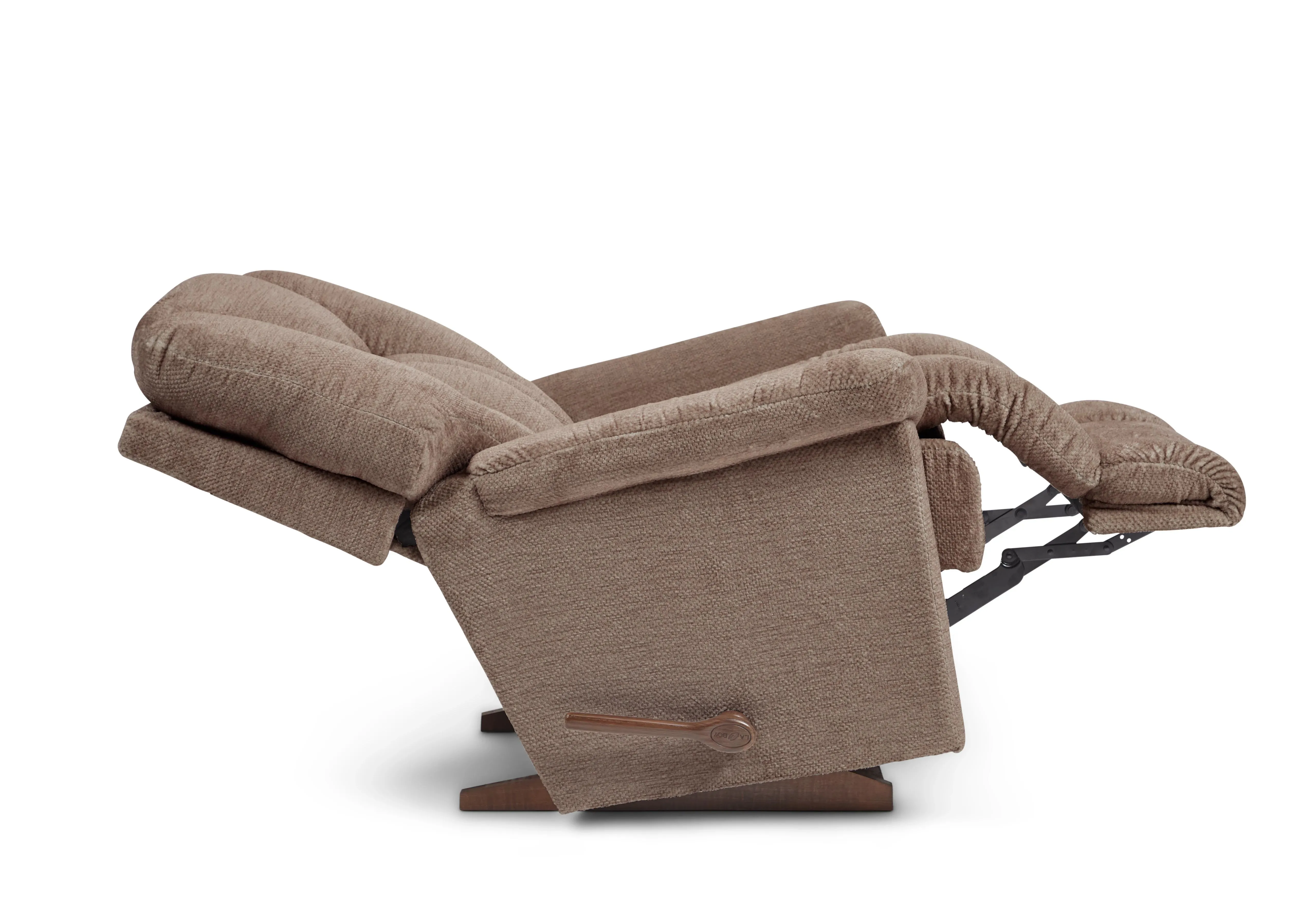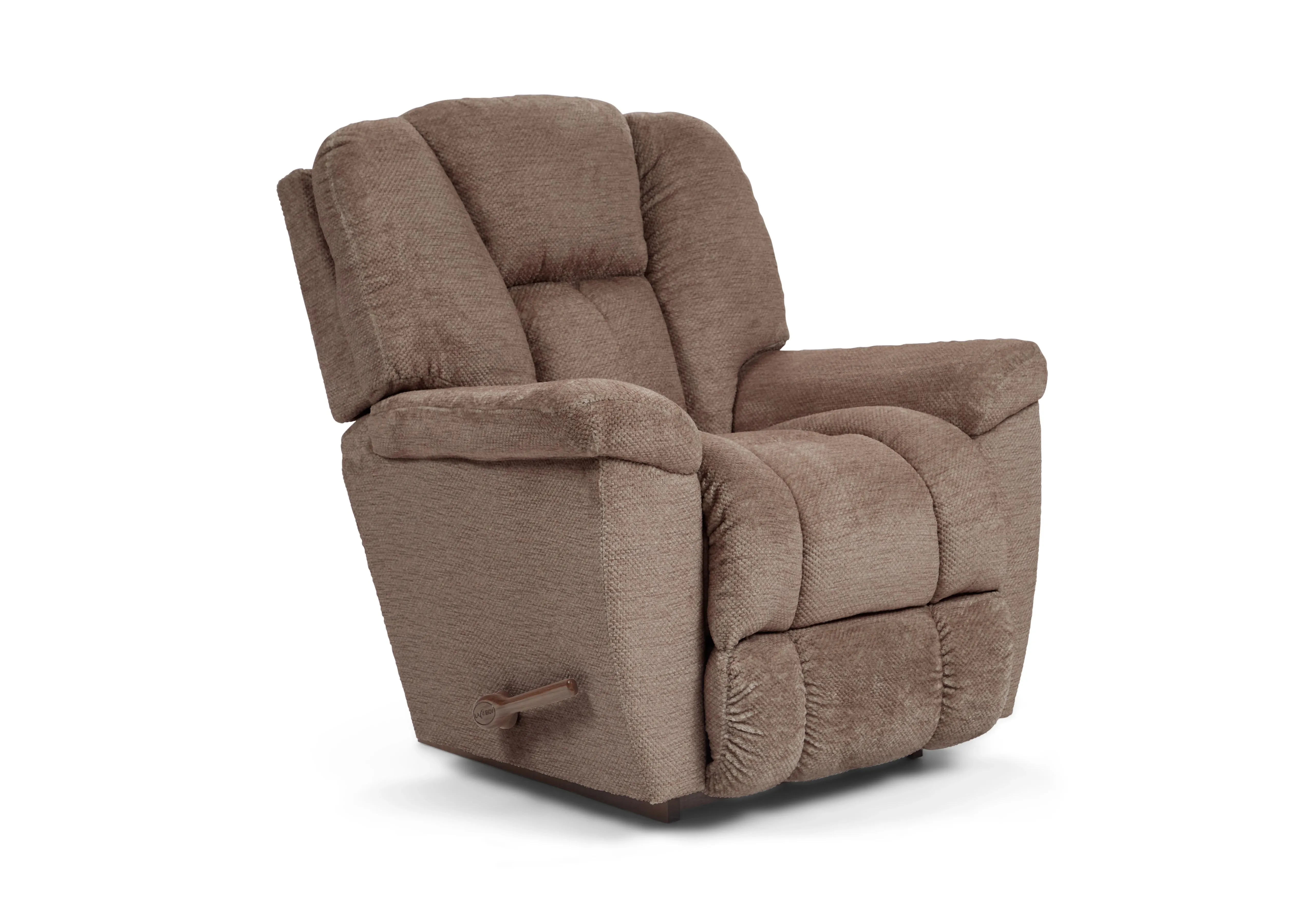 For big comfort, the Maverick Rocking Recliner is the one name you need to know. This plush family favorite is full of personality, with a chaise bucket seat, sloping padded arms and a high, biscuit-style back to deliver the ultimate in relaxation. Simply use the convenient handle on the outside arm to raise the legrest for reading, relaxing or watching TV. When you're not reclining, it's a relaxing rocker with a smooth, graceful motion. Make it yours with your choice of fabrics and other available upgrades.
