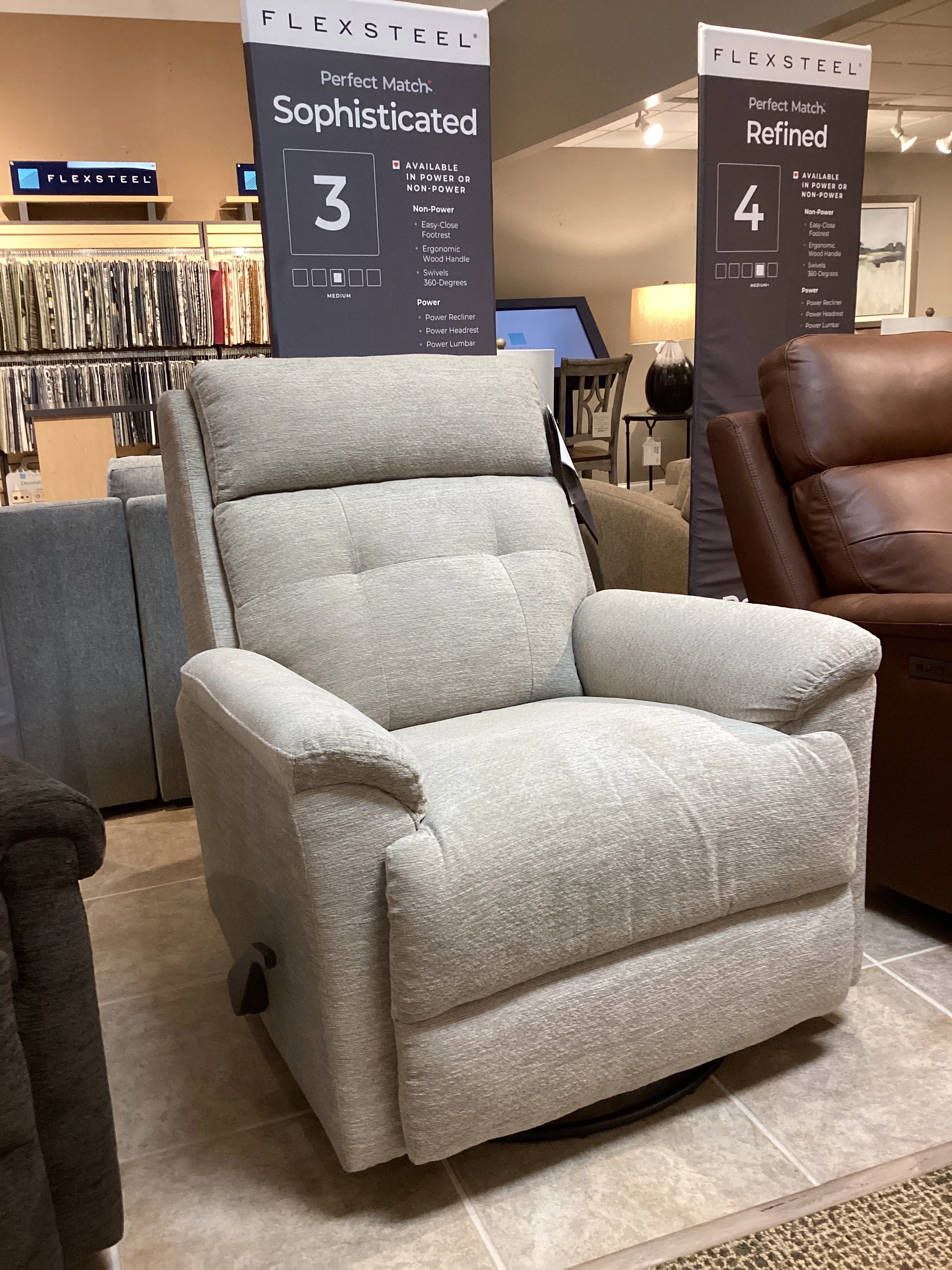 Looking for a more elevated recline experience? Sophisticated is a medium-sized option that provides ample space to kick back in cloud-soft comfort, with an innovative recline system and swivel. The recliners pull tuft back design gives a clean look while providing back support. Relaxation of the future, the Sophisticated Swivel Gliding Recliner has everything you need for elevated relaxation.
