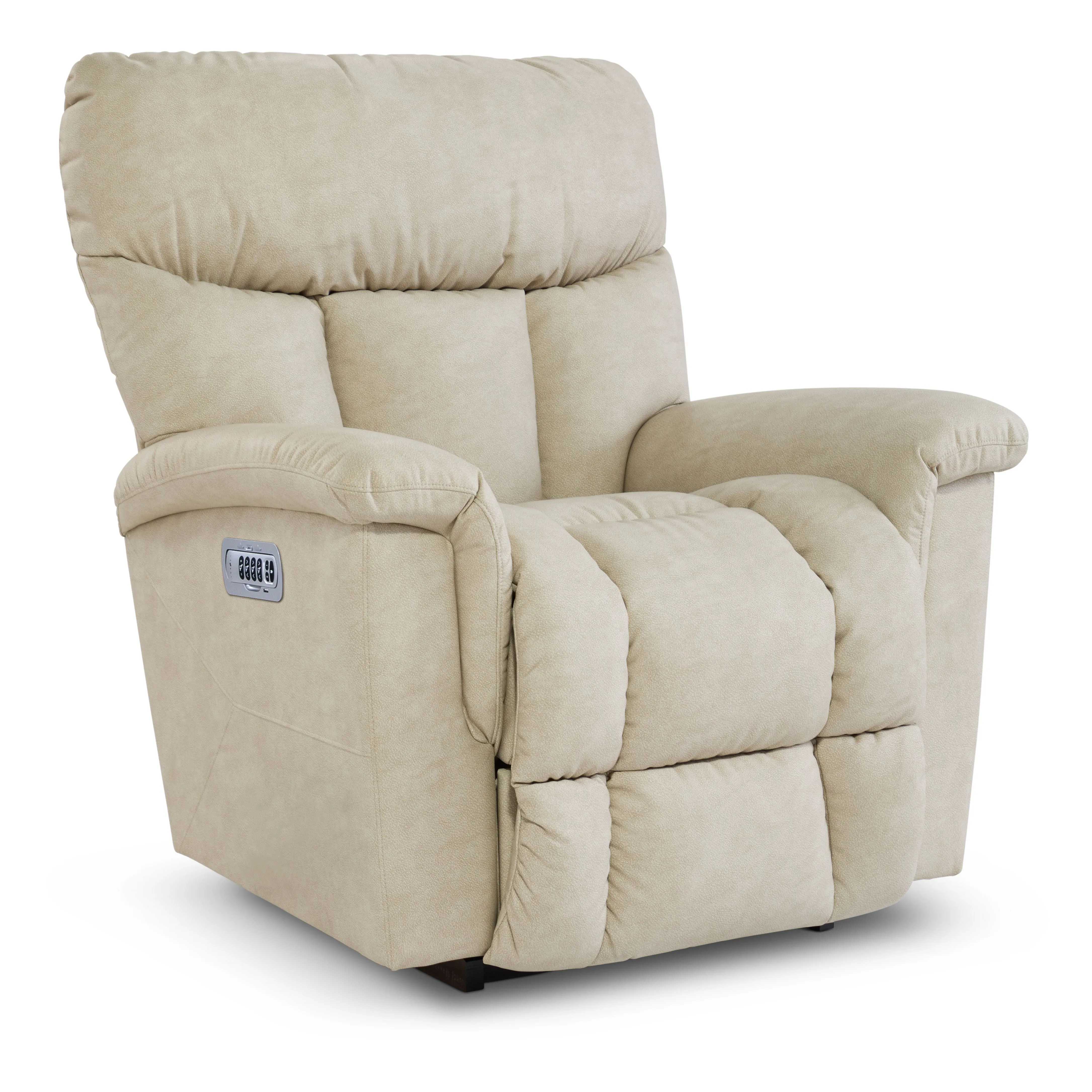 Details: • Comfortable, supportive power recliner • Chaise seat • Power adjustable headrest and lumbar support • Blown fiber back • Single-needle topstitching on arms • Rocks and reclines for total comfort • Recline and raise your feet independently with the touch of a button • Back reclines with or without raising the legrest • Two memory options save your favorite reclining positions • Home button returns you to the upright seated position • Built-in USB port powers your smartphone or tablet • Wireless remote upgrade available • Double-picked blown fiber fill for improved shape retention • High grade foam seat cushion maintains its comfort and appearance • Premium grade fabrics and leathers tested to resist wear and fading •Includes our Limited Lifetime Warranty •Customizable with your choice of fabrics and other upgrades •Plugs into an AC outlet