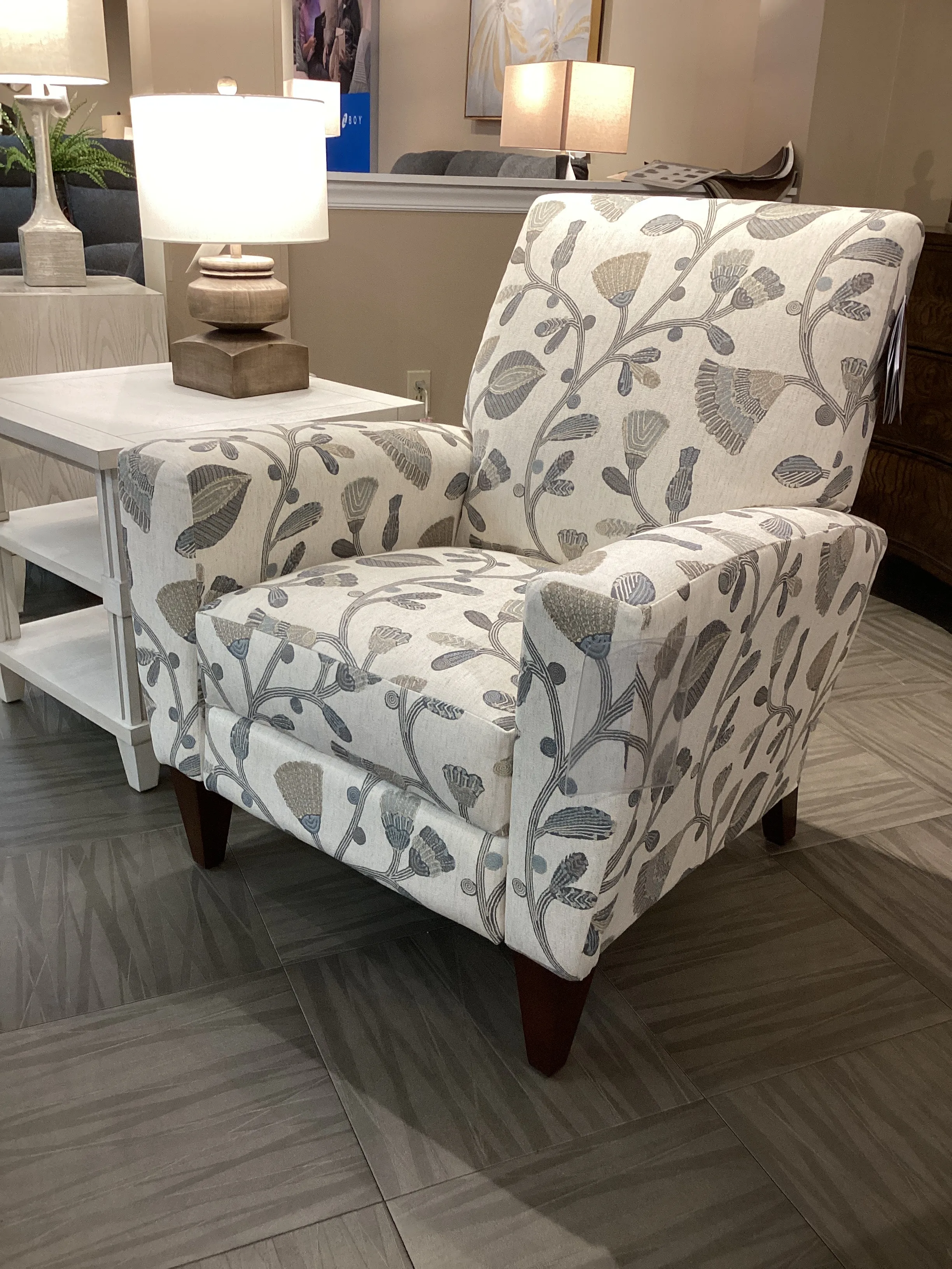 With its fresh, clean silhouette, our new Scarlett High Leg Reclining Chair gives you unlimited possibilities to create the perfect room. This versatile chair features casually tapered arms and tall wooden legs. Choose your favorite color or pattern to make a personalized style statement. And, looks are only half the story, because this designer chair is actually a recliner. Simply push back to enjoy two positions of instant reclining comfort.