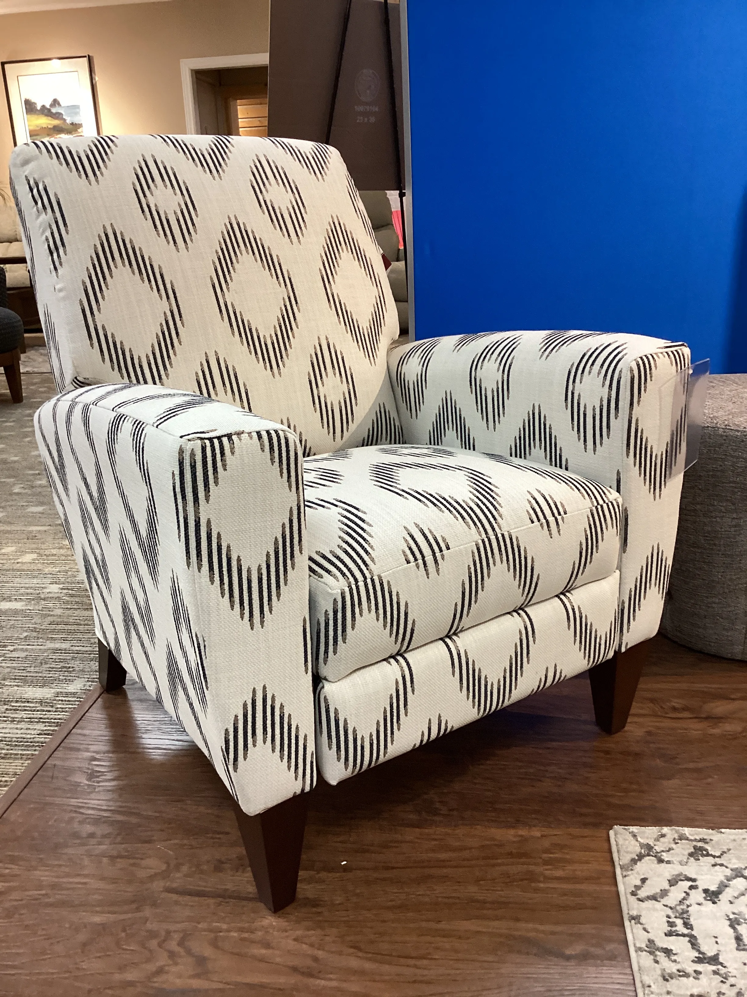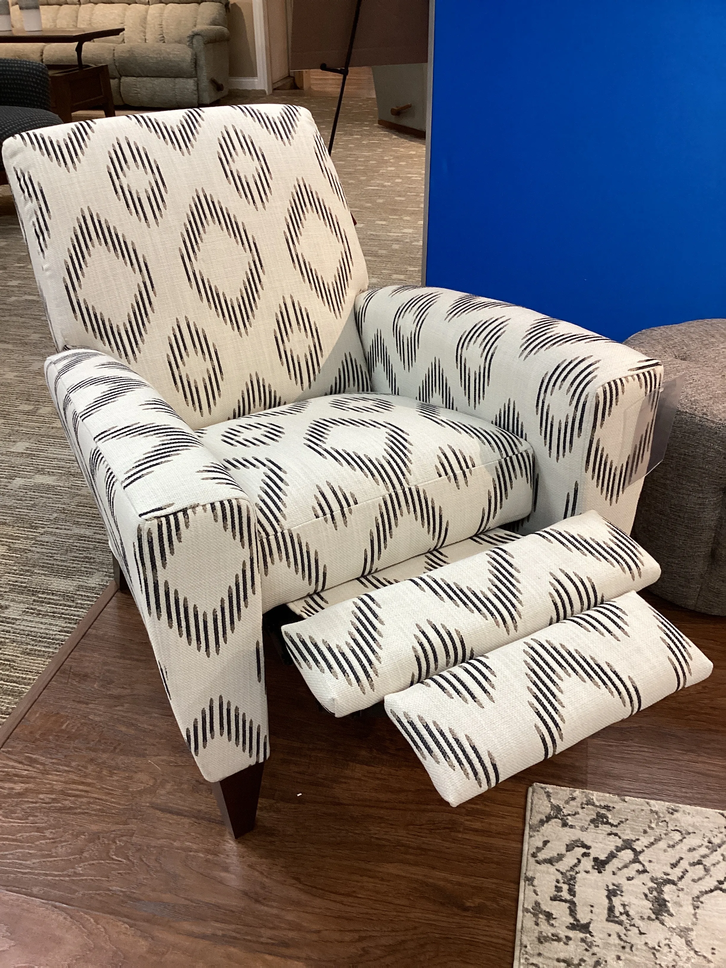 With its fresh, clean silhouette, our new Scarlett High Leg Reclining Chair gives you unlimited possibilities to create the perfect room. This versatile chair features casually tapered arms and tall wooden legs. Choose your favorite color or pattern to make a personalized style statement. And, looks are only half the story, because this designer chair is actually a recliner. Simply push back to enjoy two positions of instant reclining comfort. Make it yours with your choice of fabrics, wood finishes and other available upgrades.