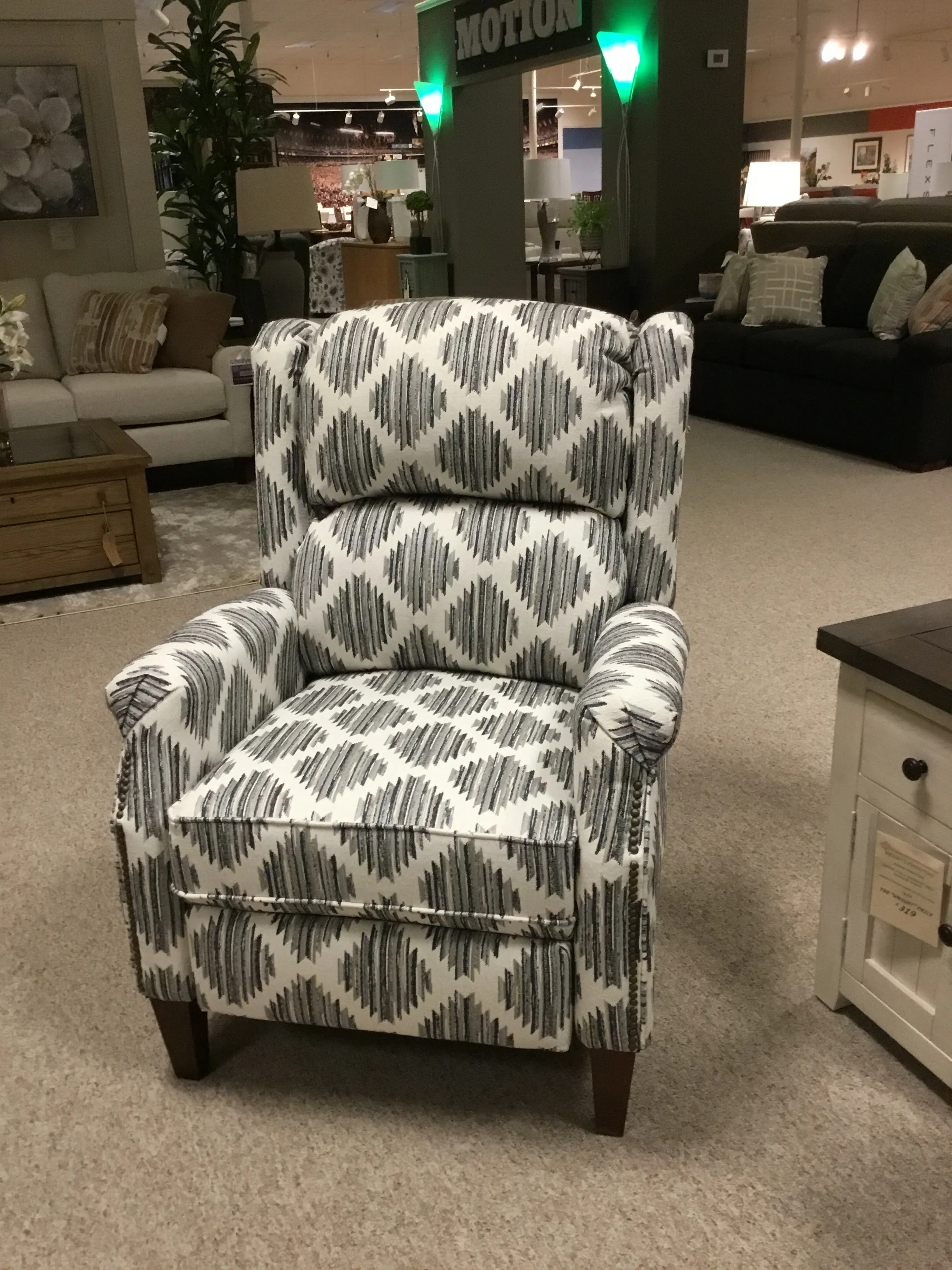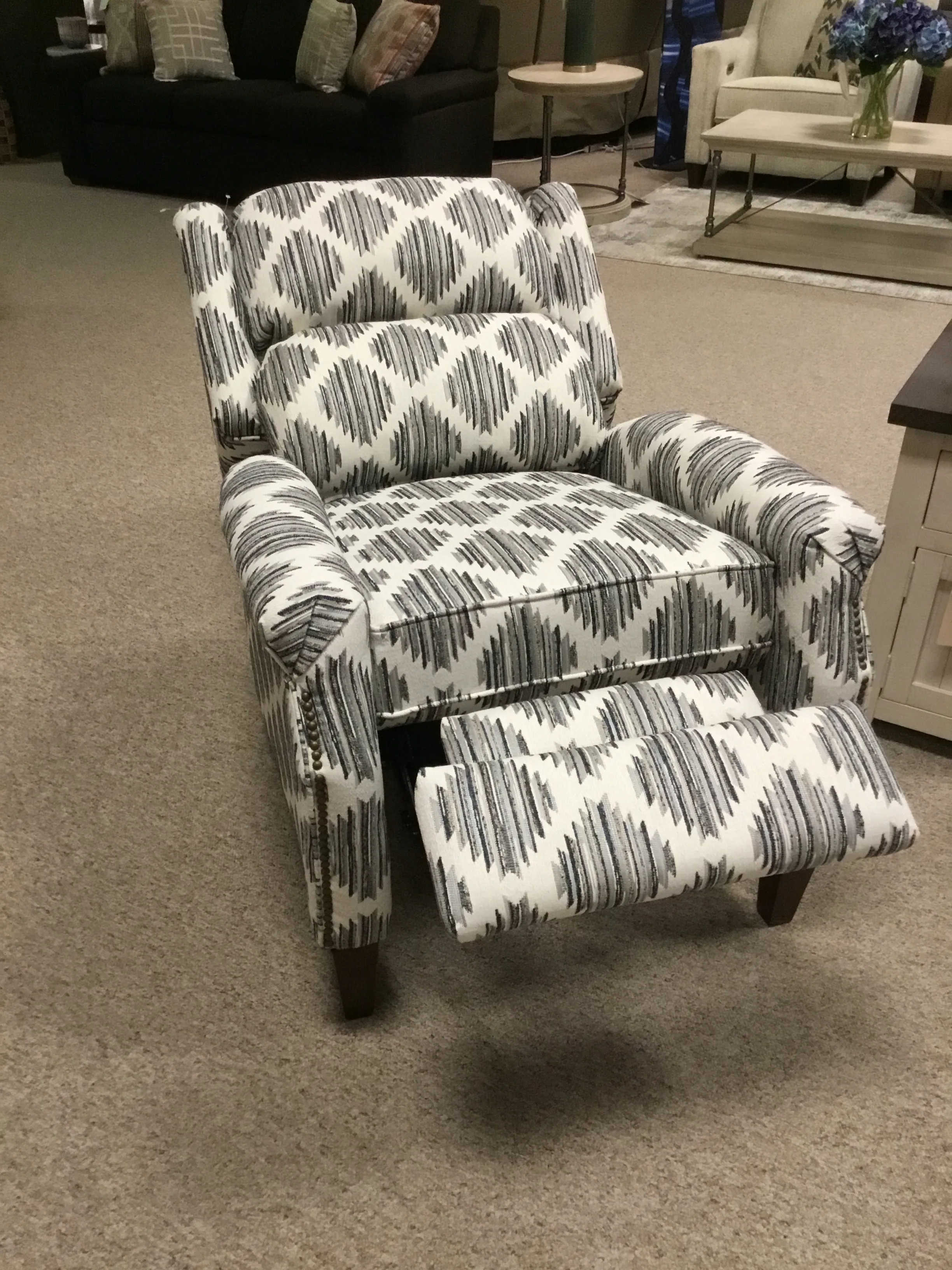 Features Reclining, Nailhead, Wood Leg, Upholstered, Accent