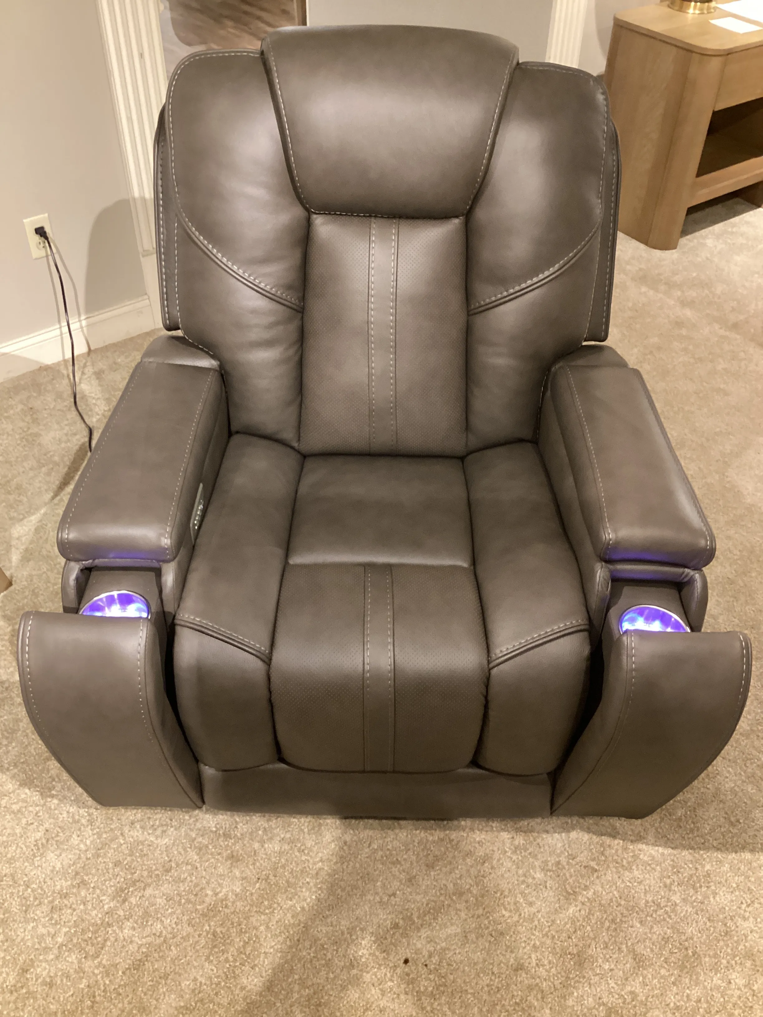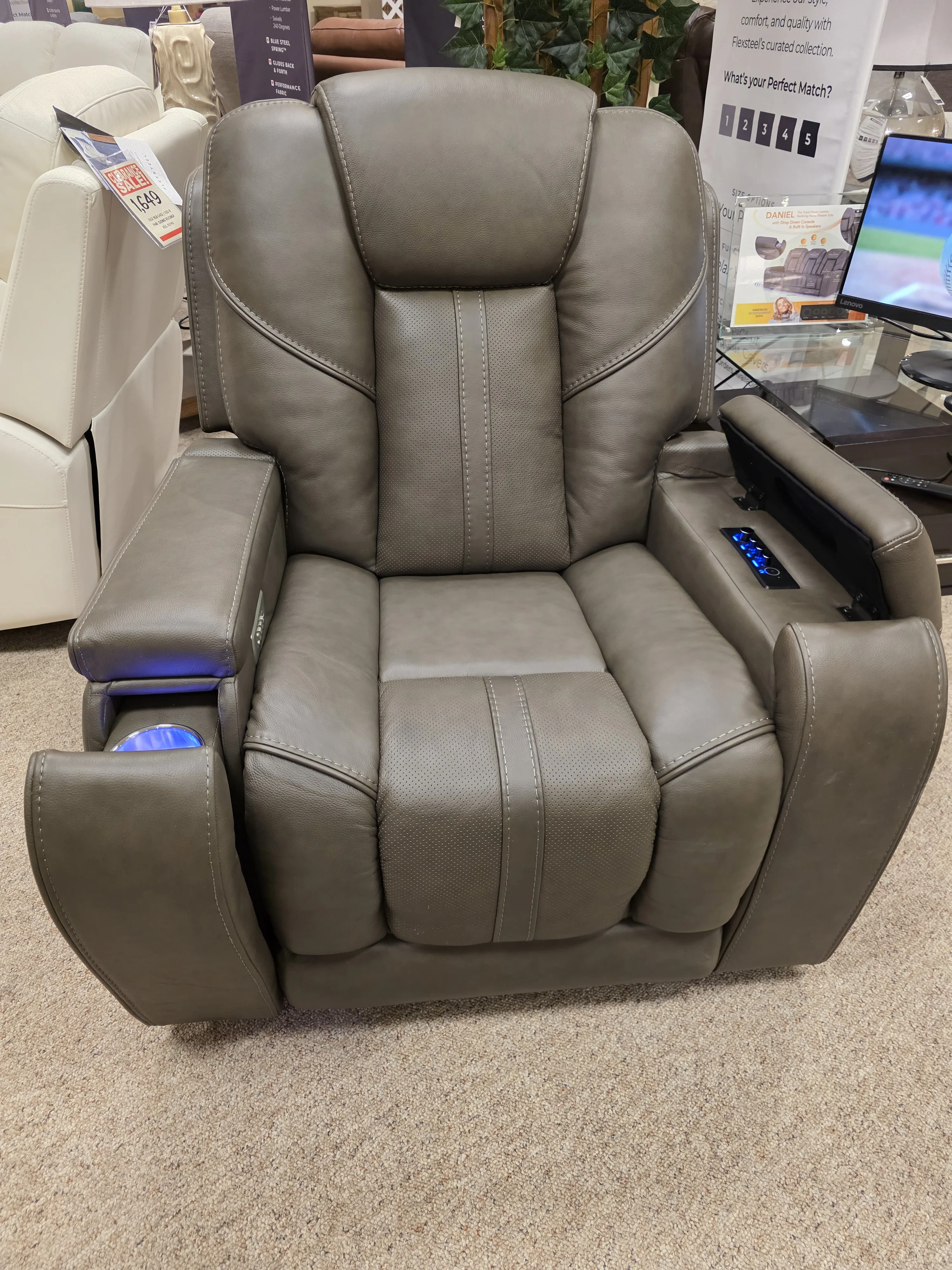 Enjoy the ultimate blend of luxury, comfort, and high-tech entertainment with the Daniel Triple-Power Leather Immersive Entertainment Recliner with Built-In Speakers.