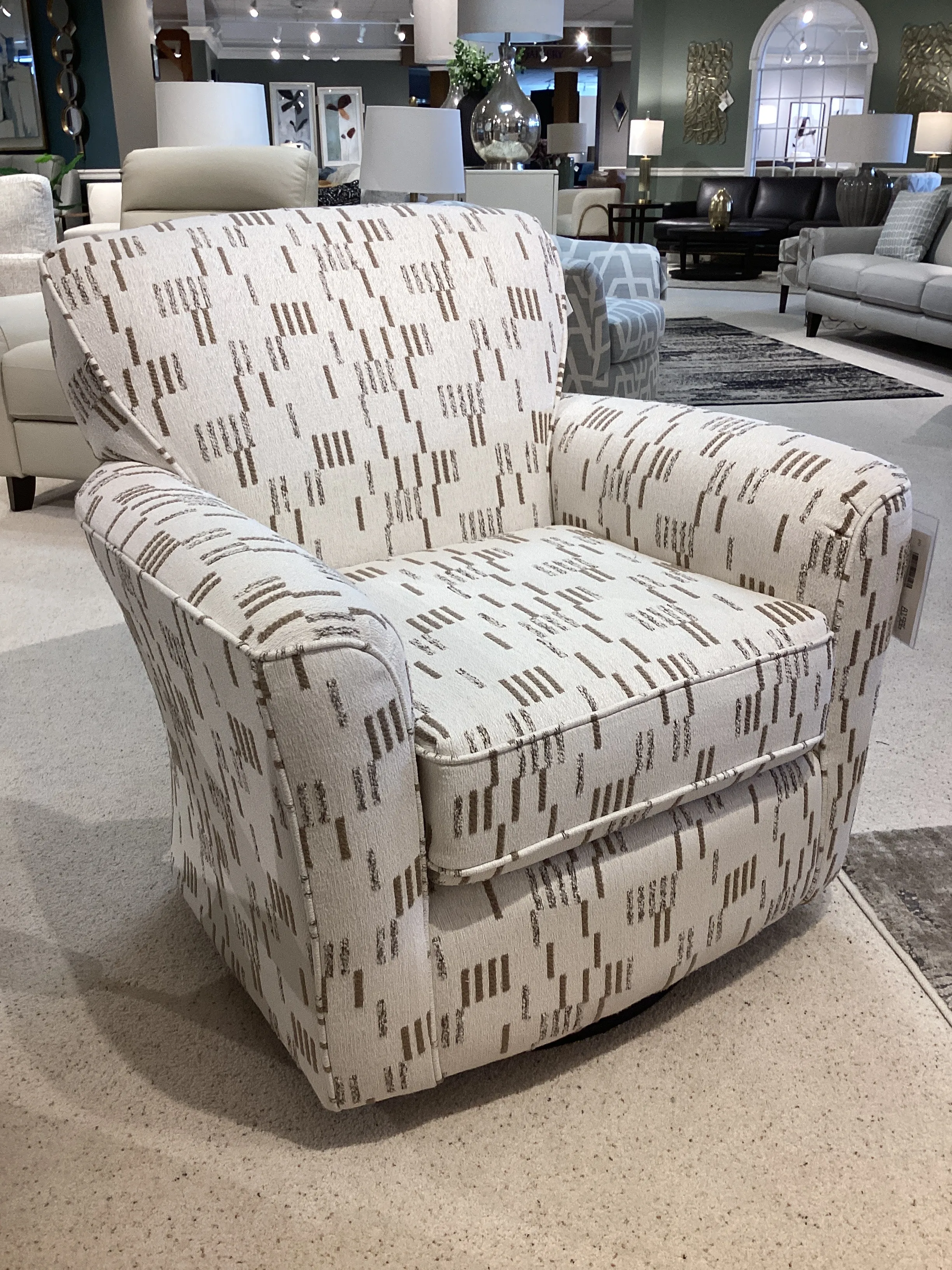 Built with a durable hardwood frame and a base constructed of steel, the Kaylee Swivel Chair is trouble free. Available with a swivel or swivel glider base, one trouble may arise....trying to decide amongst all the great fabrics!
