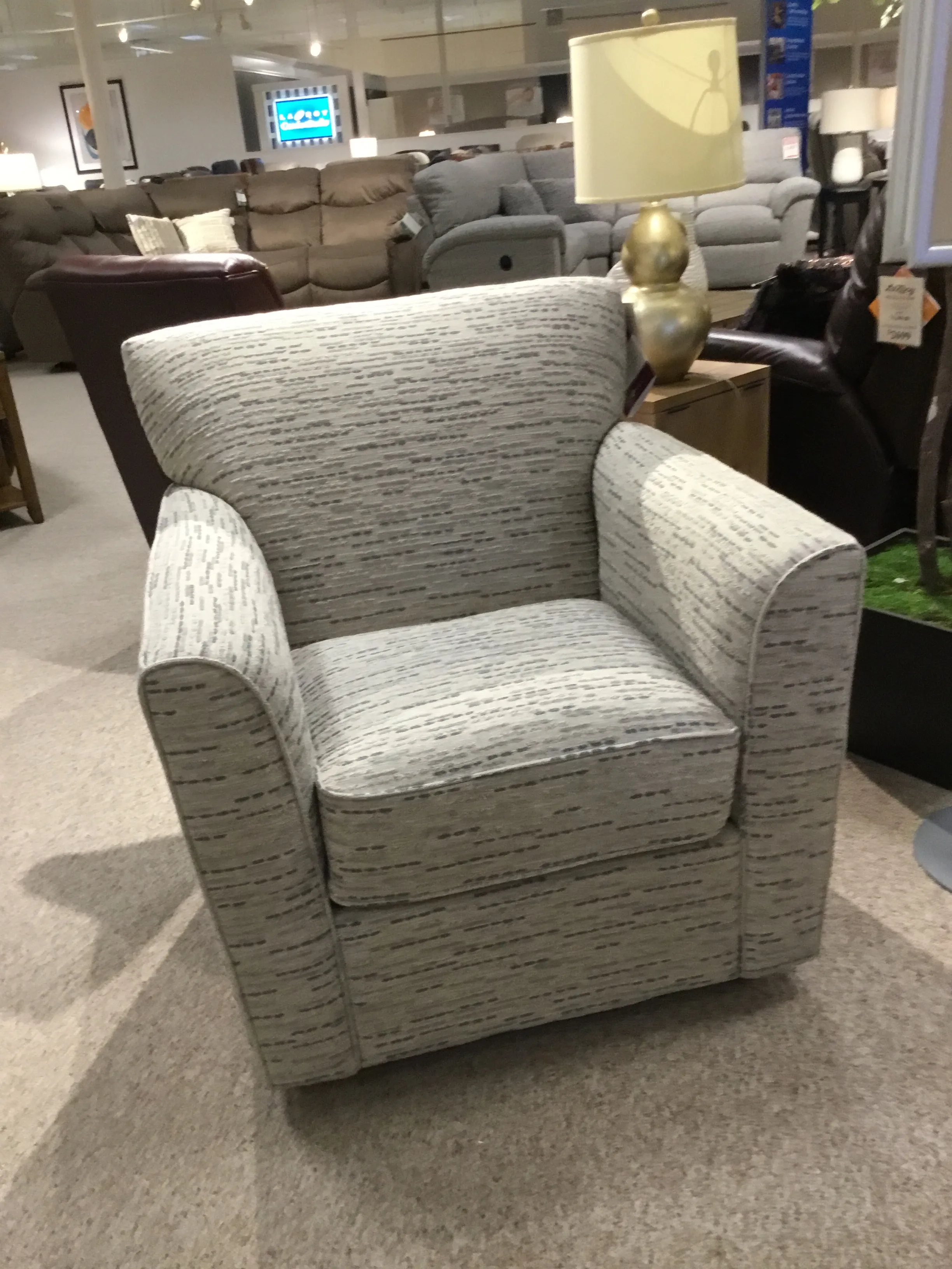 With casual style, Premier construction and the ability to swivel and glide, Allegra has all the right moves. A gentle gliding motion eases you into relaxation, while a 360-degree swivel base gives you the freedom to change your focus without ever getting up. Combine that with clean lines, slightly flared arms and welt trim and this stylish seat is really going places.