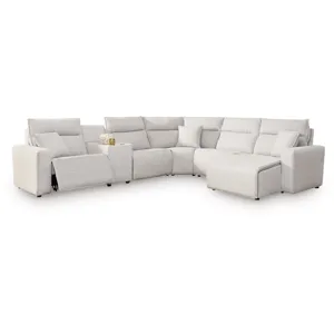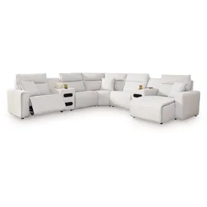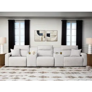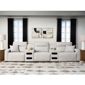 Includes 6 modular pieces: left-arm facing power recliner, armless chair, wedge, console with storage, power armless recliner and right-arm facing power recliner