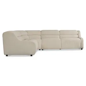 The Gio power motion sectional showcases sinuous curves and a channeled upholstery design. Controls hidden discreetly on the sides of the cushions control the footrests. Headrests pop up from the top, allowing a full recline for each piece except the wedge. It's sensuous comfort with a modern design.