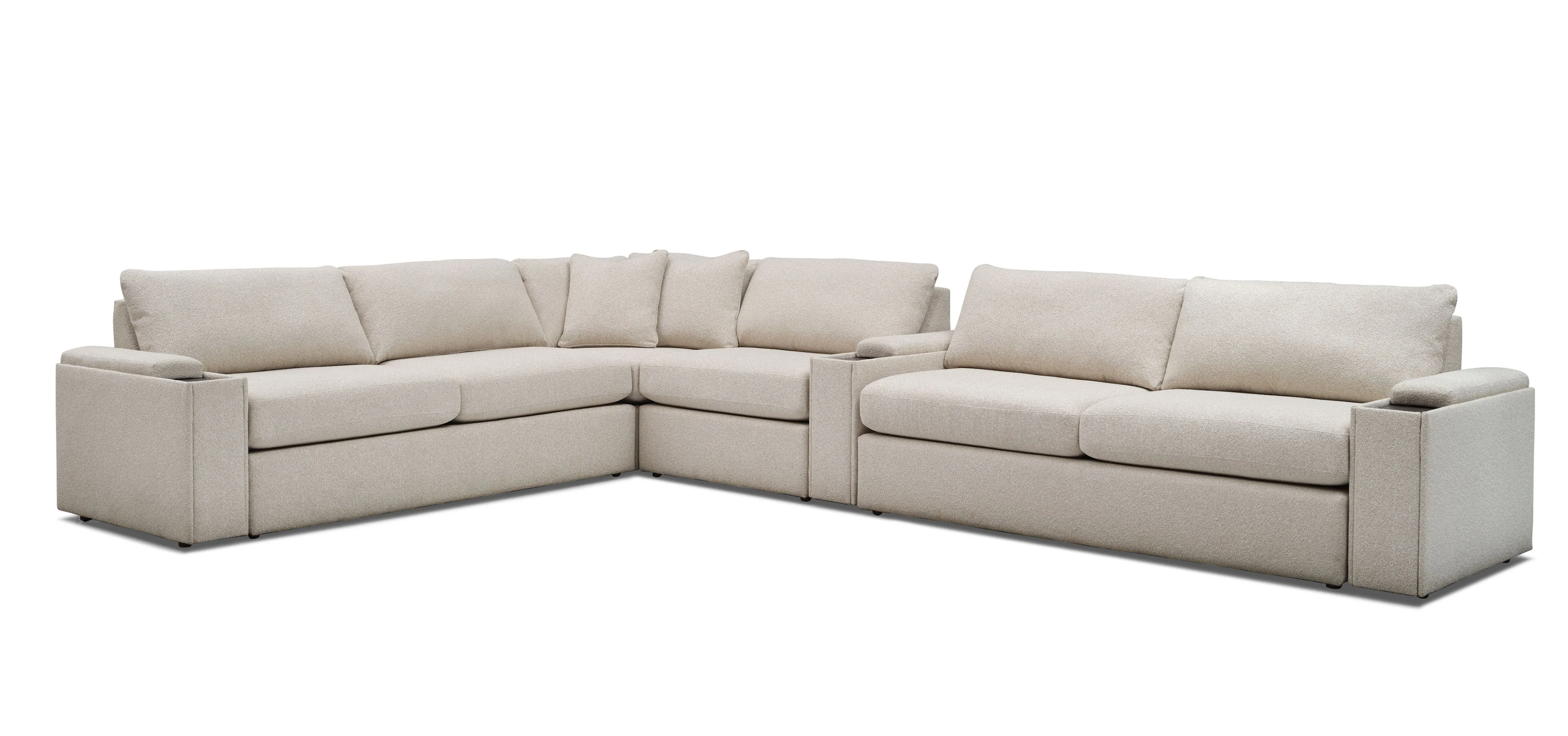 Tahoe 6 PC Sectional includes Left Arm Sitting Storage Arm (6AL632), Right Arm Siting Storage Arm (6AR632), Corner Unit (6CC632), Armless Loveseat x2 (6MM632), & Storage Console (6SC632).