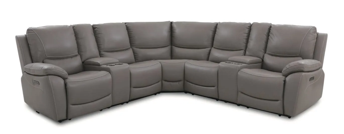 6 PC Power Reclining Sectional includes left arm facing power recliner w/power headrest, right arm facing power recliner w/power headrest, armless reclininer w/power headrest, armless chair, corner wedge, & straight console w/USB.