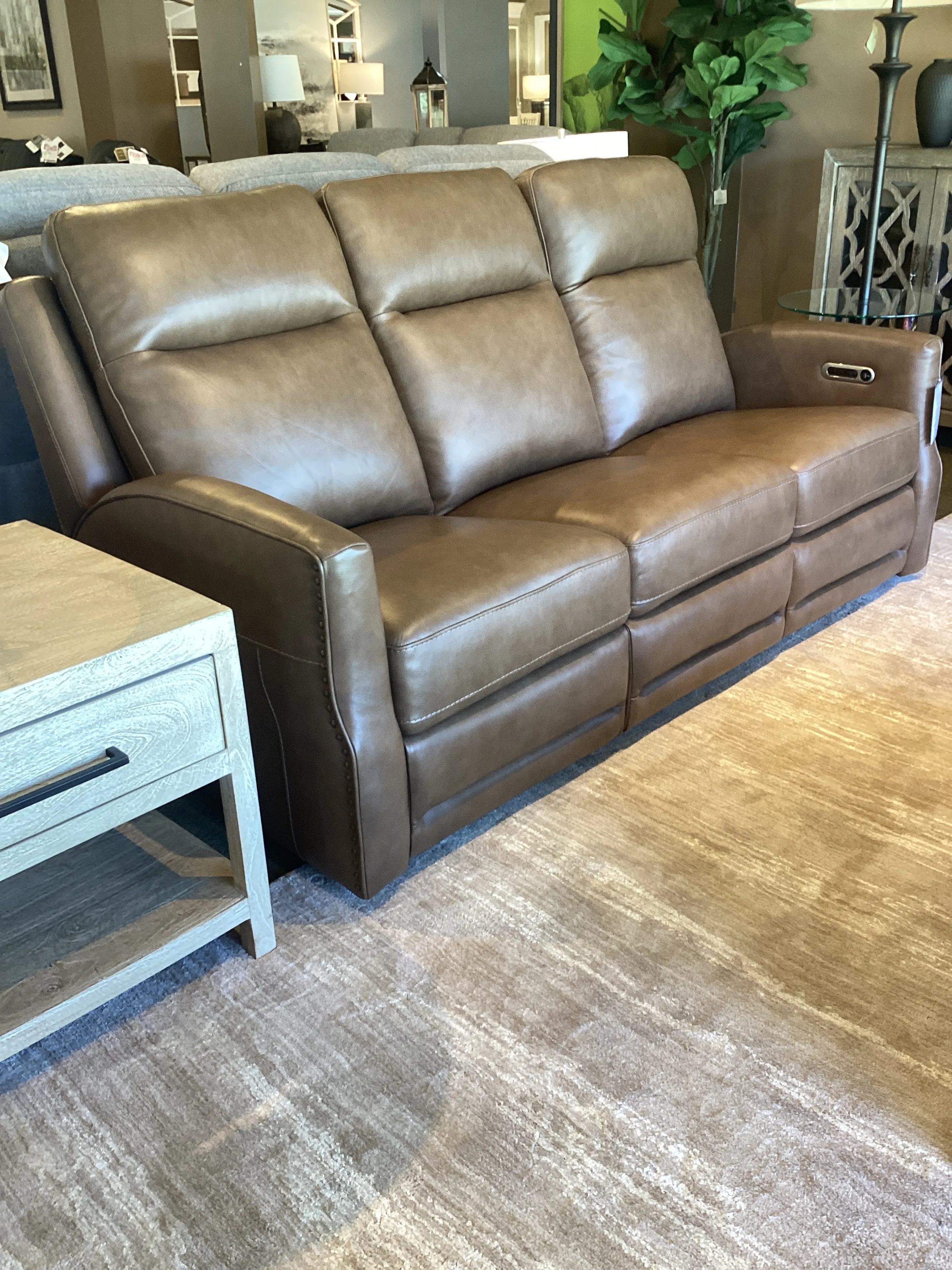 The Maxwell reclining sofa has all the grand, noble gravitas to make a statement, complete with the cutting-edge comfort you need to relax. This traditional design brings a vintage flair along with triple-power recline for modern relaxation. The Maxwell includes a power control for Zero Gravity recline and USB-A and USB-C ports to charge all your devices. Upholstered in rich leather options and complete with a gleaming nailhead trim, Maxwell brings all the vintage style you want together with the innovative comfort you need.